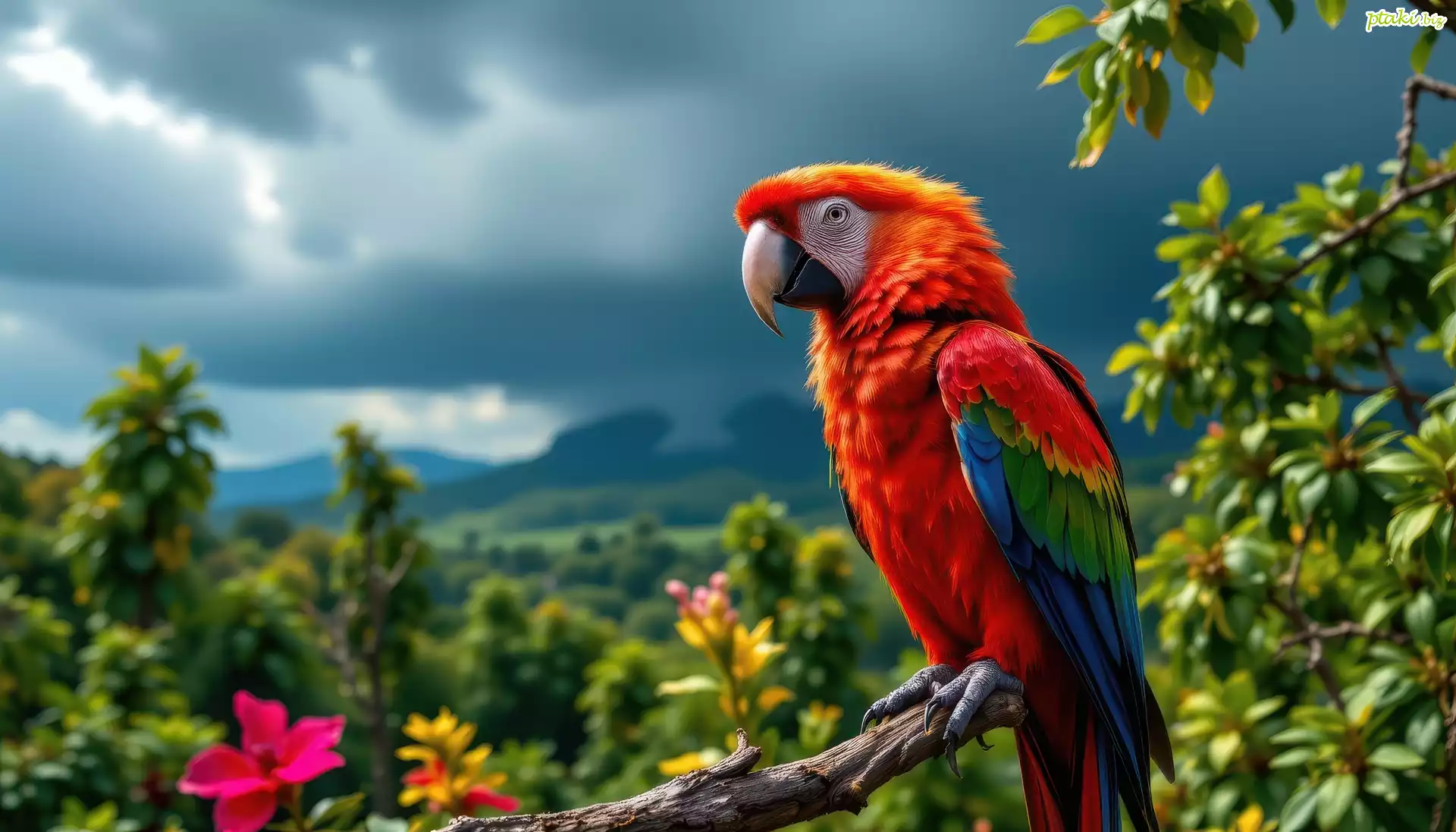 Ptak, Papuga, Ara, Konar, Ciemne, Chmury, Grafika AI