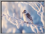 Ptak, Gałązka, Ośnieżona, AI