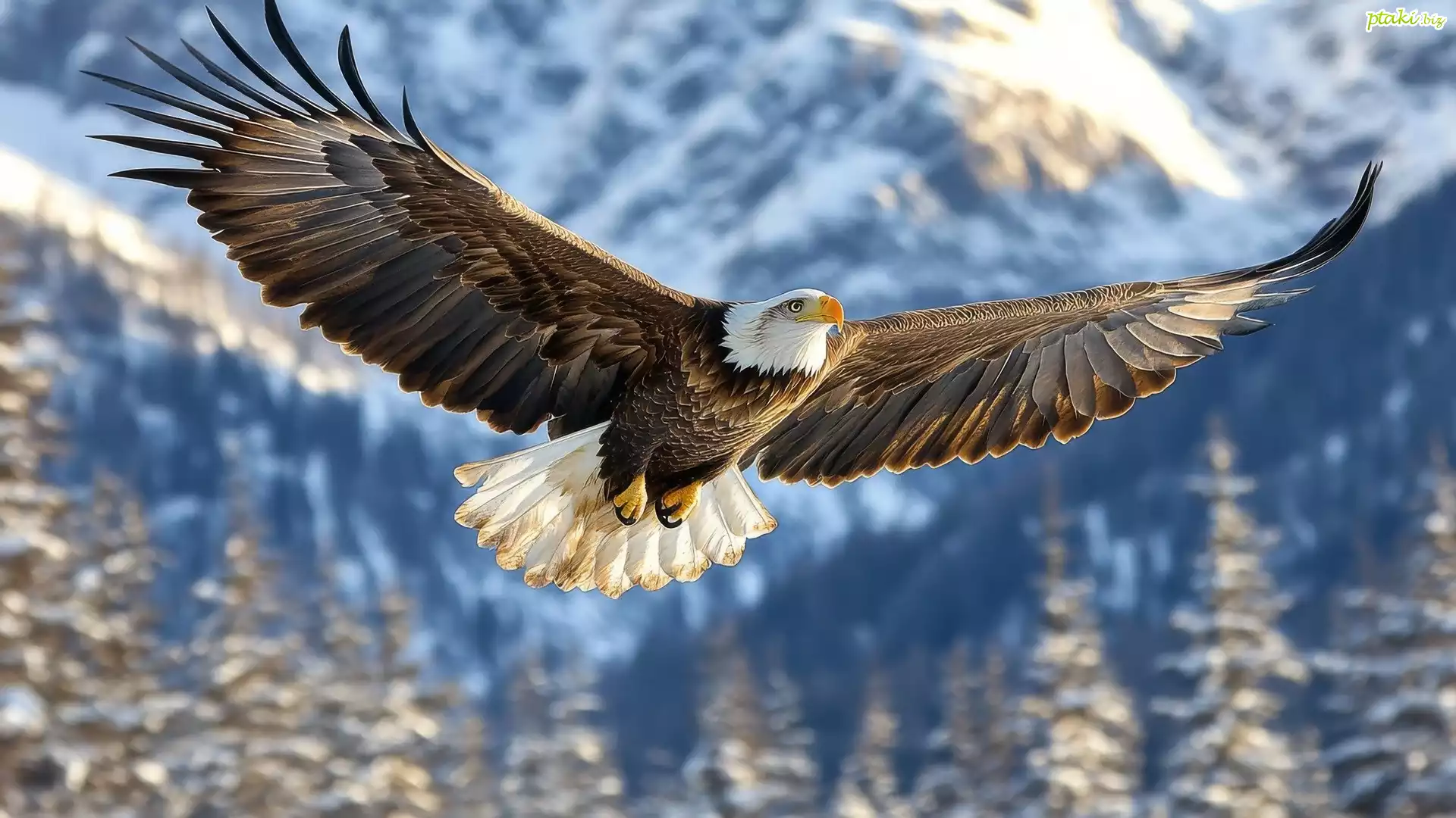Fruwający, Ptak, Bielik amerykański, Rozpostarte, Skrzydła
