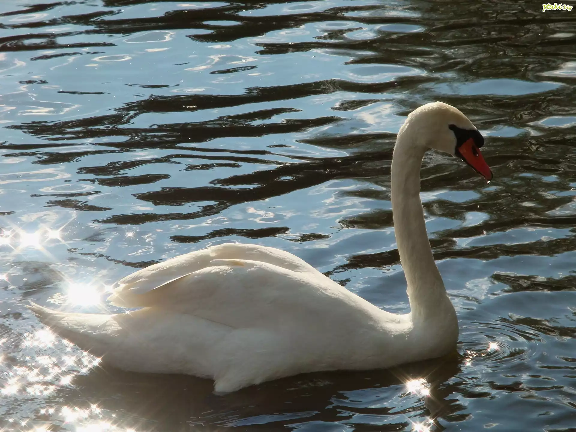 Biały, Łabędź, Woda, Refleksy, Światła