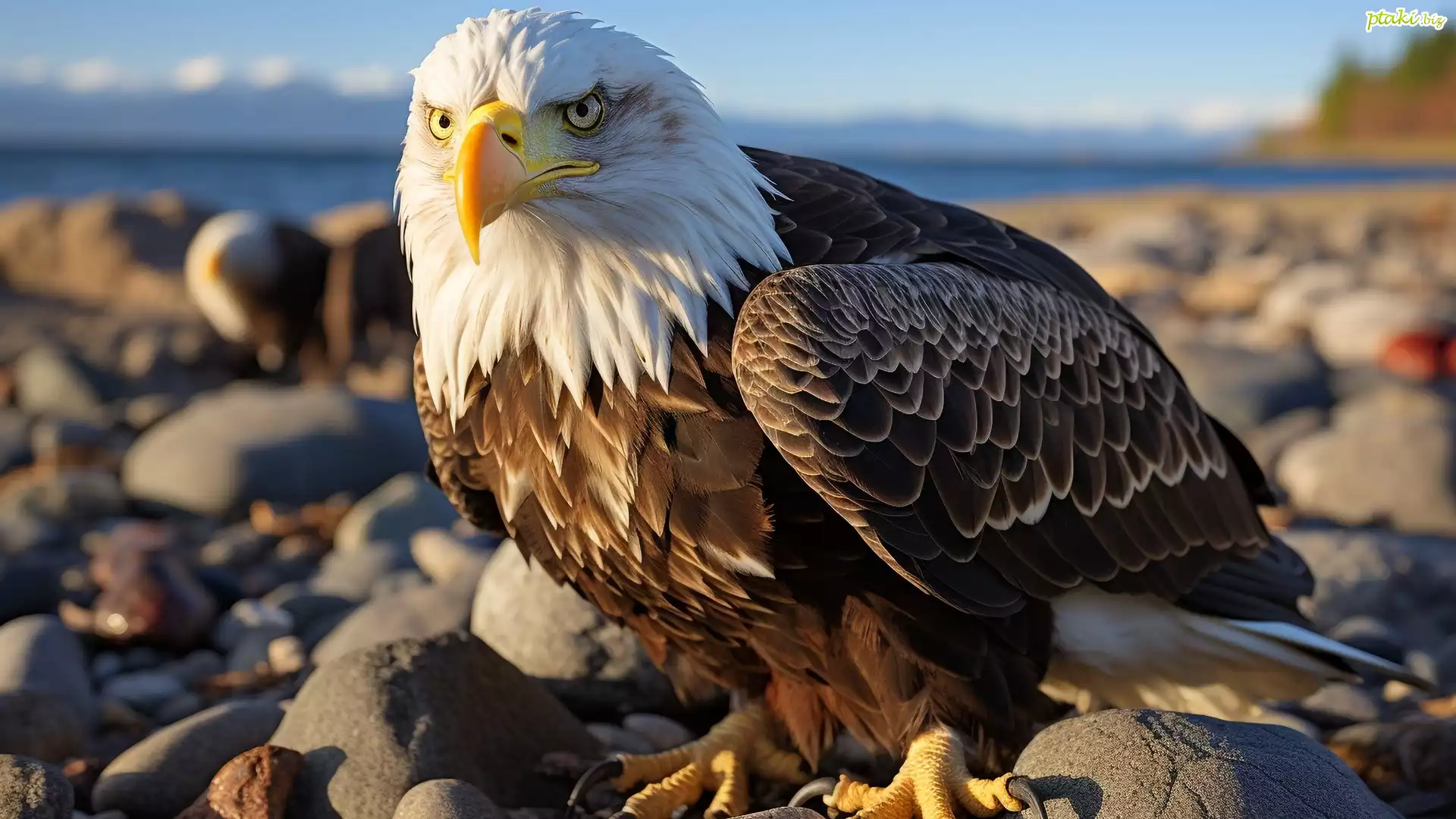 Ptak, Bielik amerykański, Kamień, Grafika