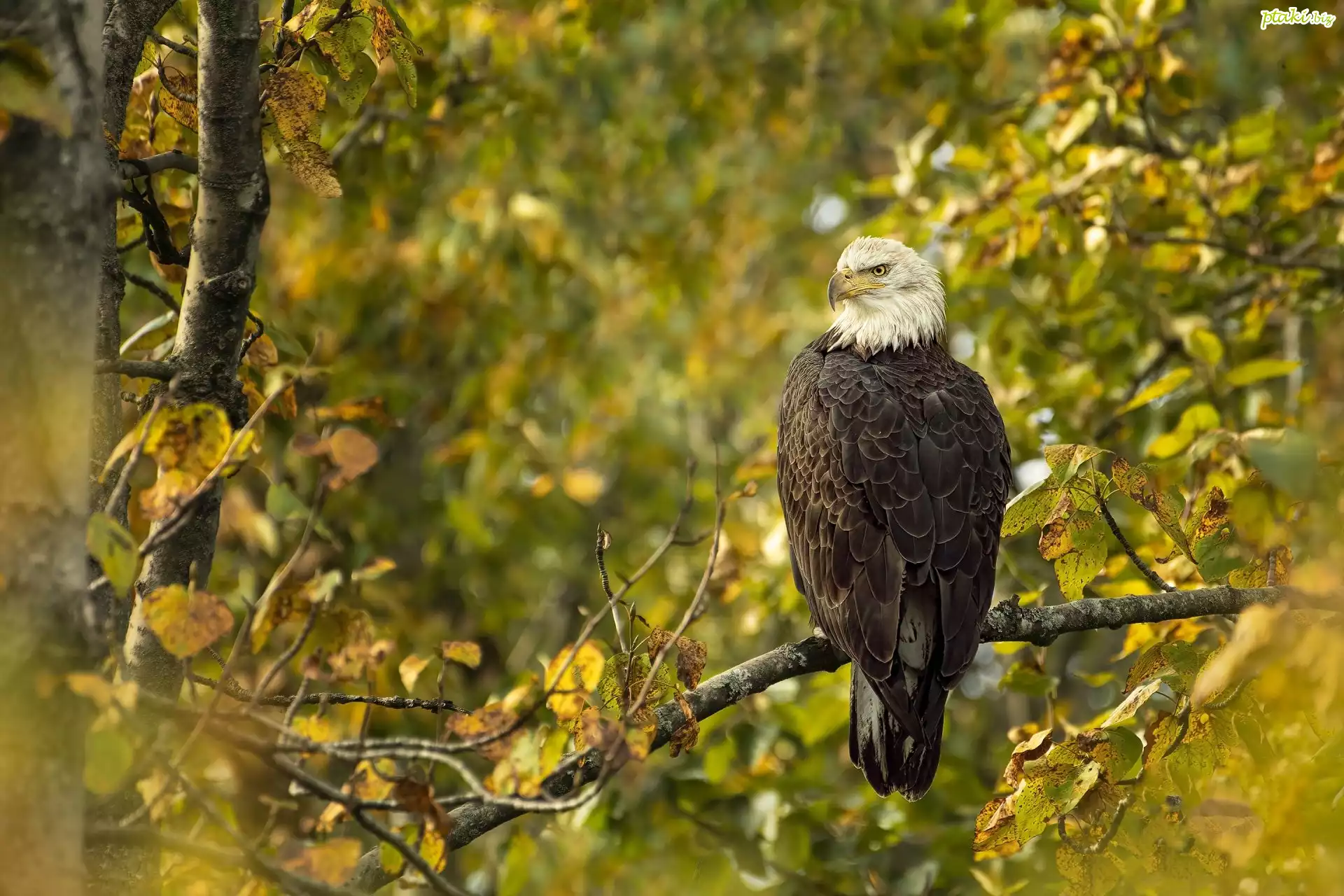 Bielik amerykański, Ptak, Gałęzie, Liście