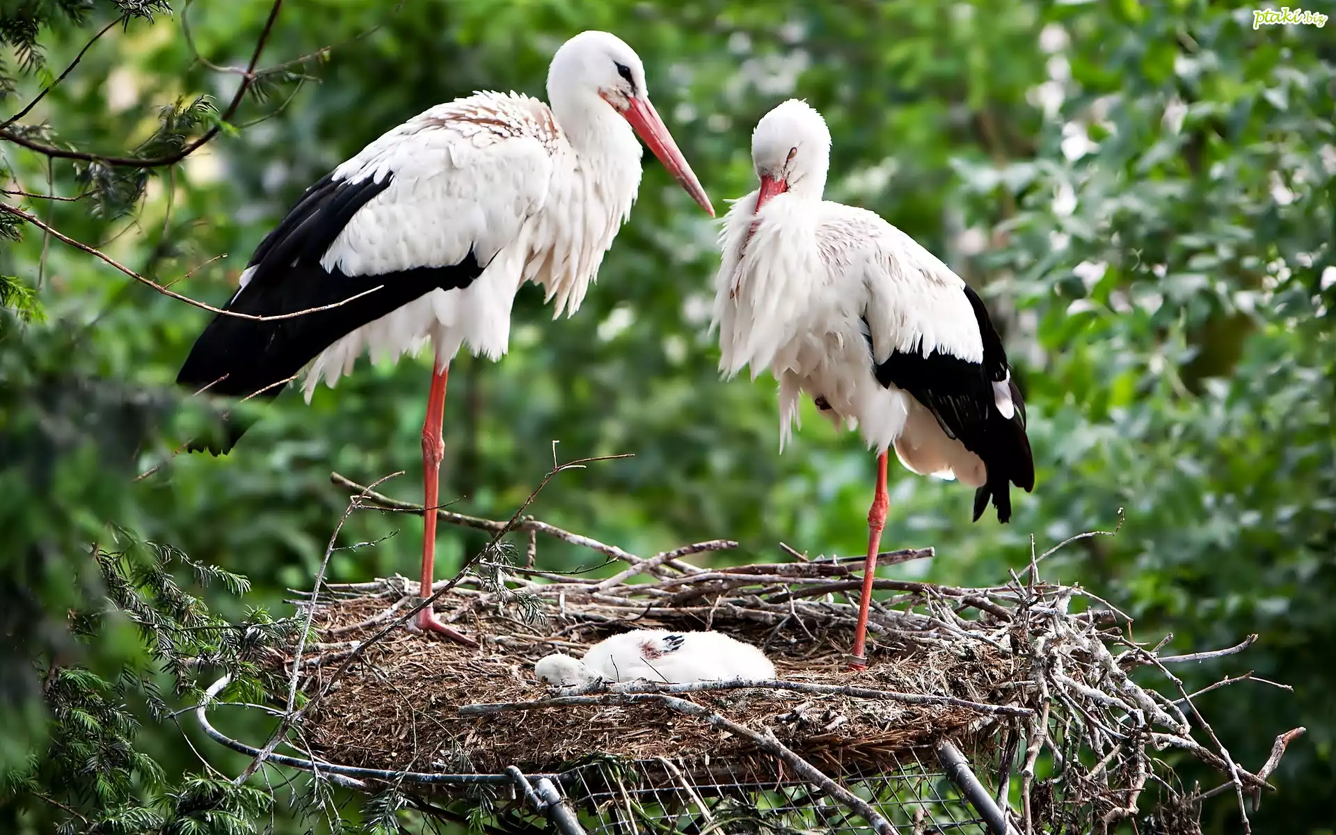 Dwa, Bociany, Gniazdo
