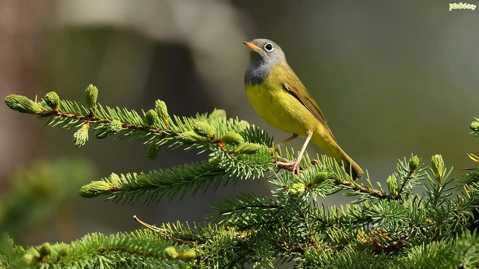 Ptak, Cytrynka obrączkowa, Gałązki, Jodła