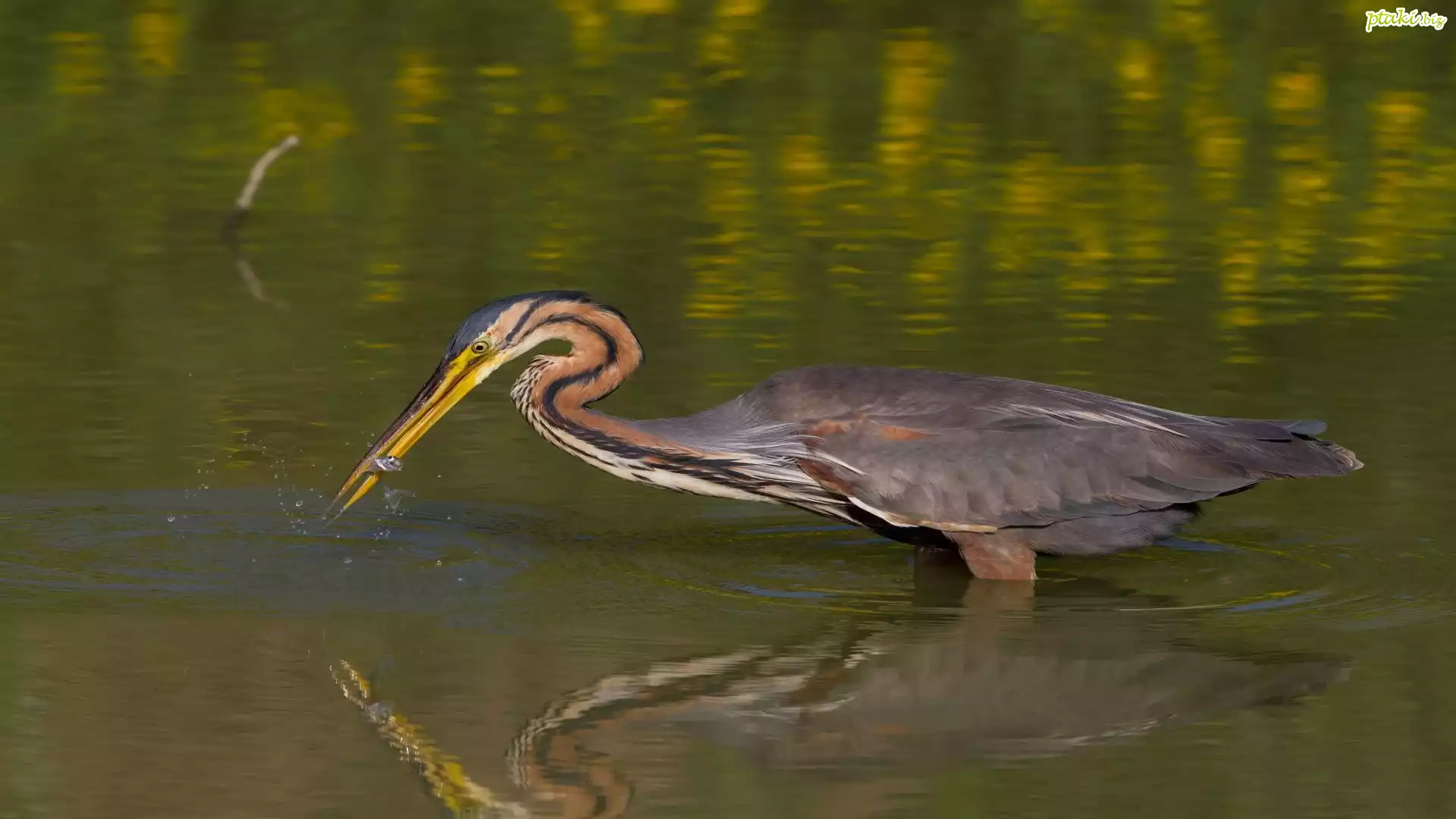 Czapla, Purpurowa, Żerowanie, Jezioro