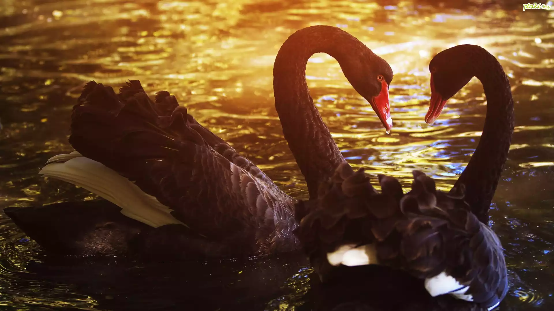 Czarne, Łabędzie, Zachód słońca, Woda