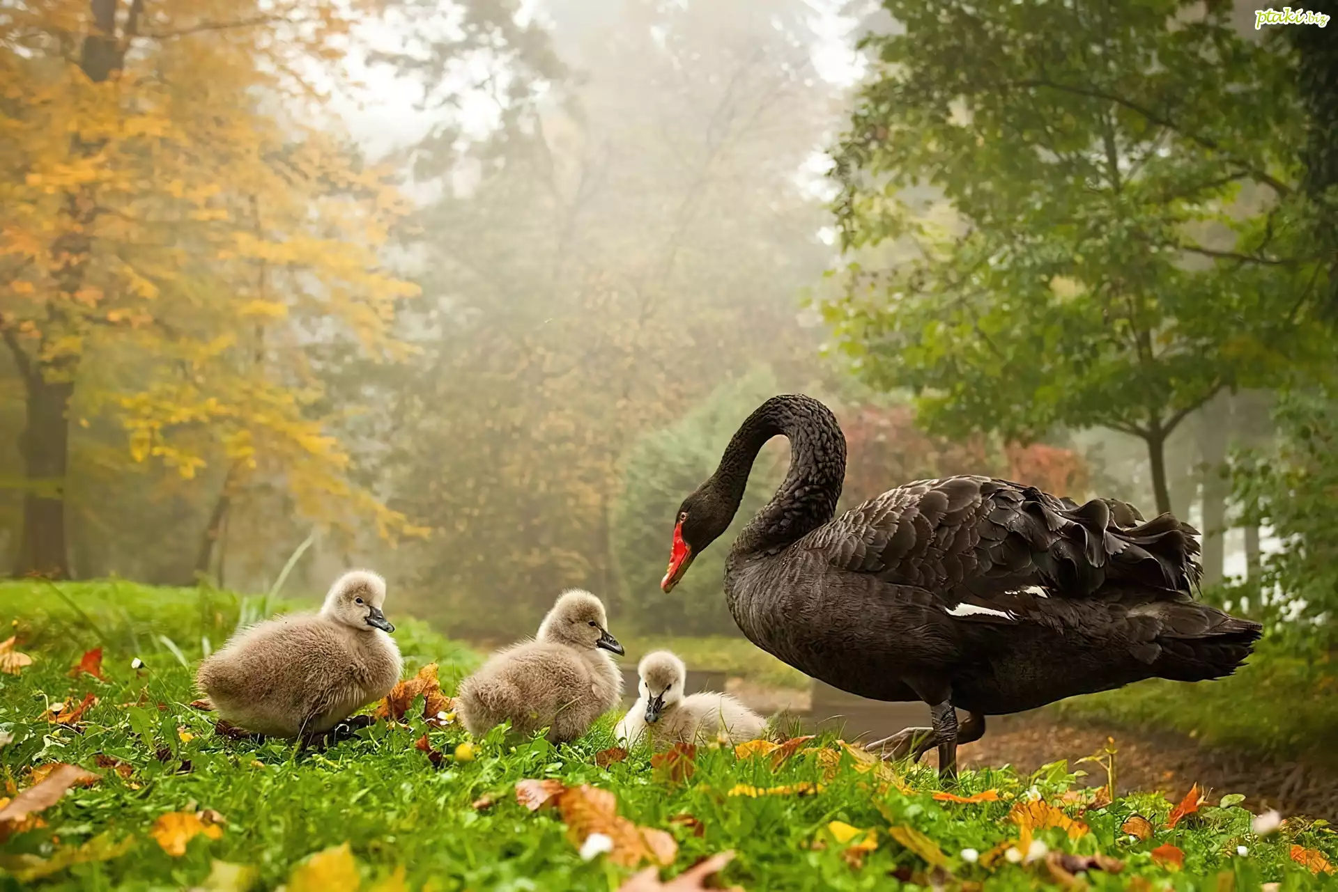 Czarny, Łabędz, Pisklęta, Park