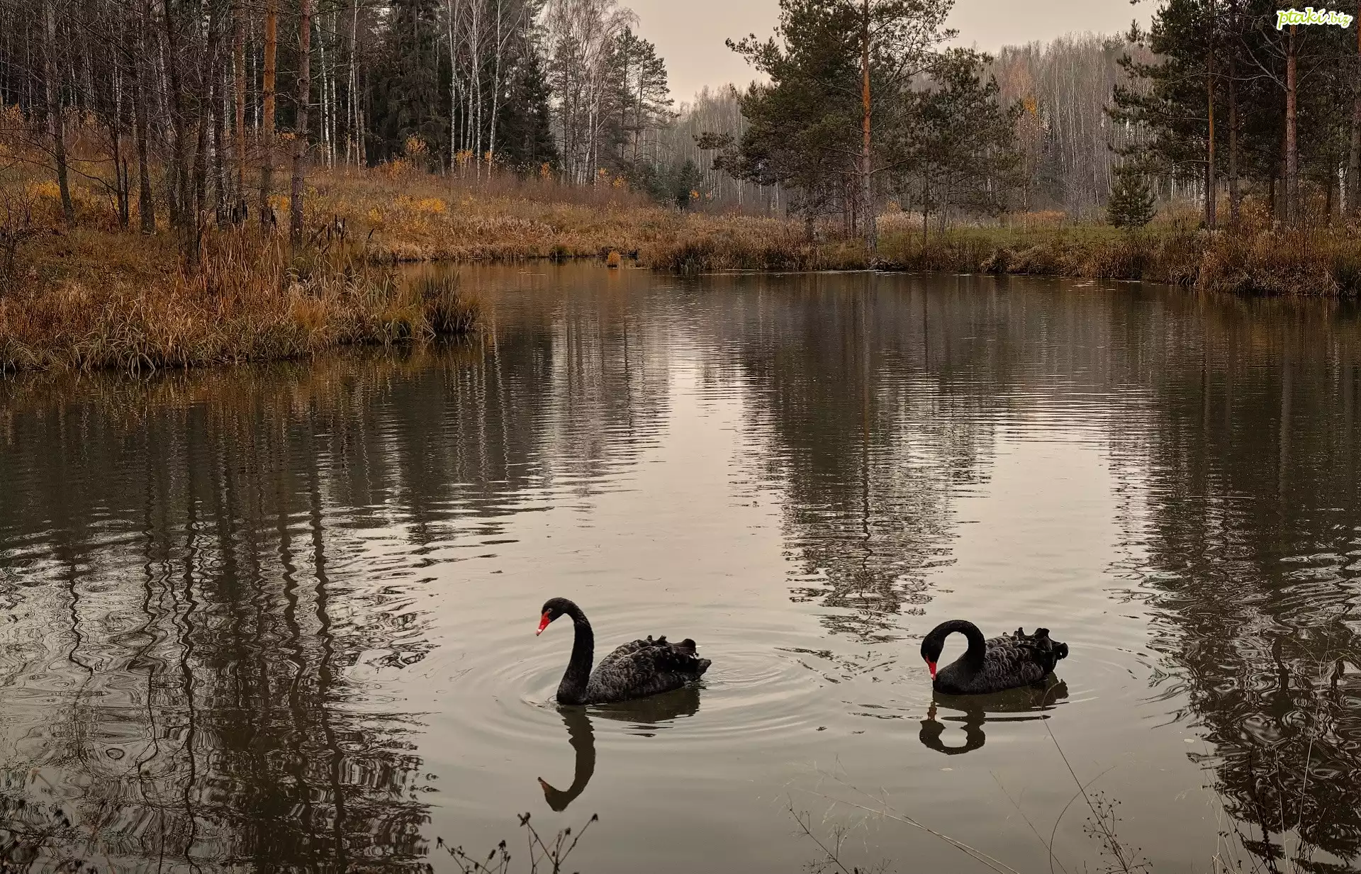 Drzewa, Las, Staw, Dwa, Czarne, Łabędzie