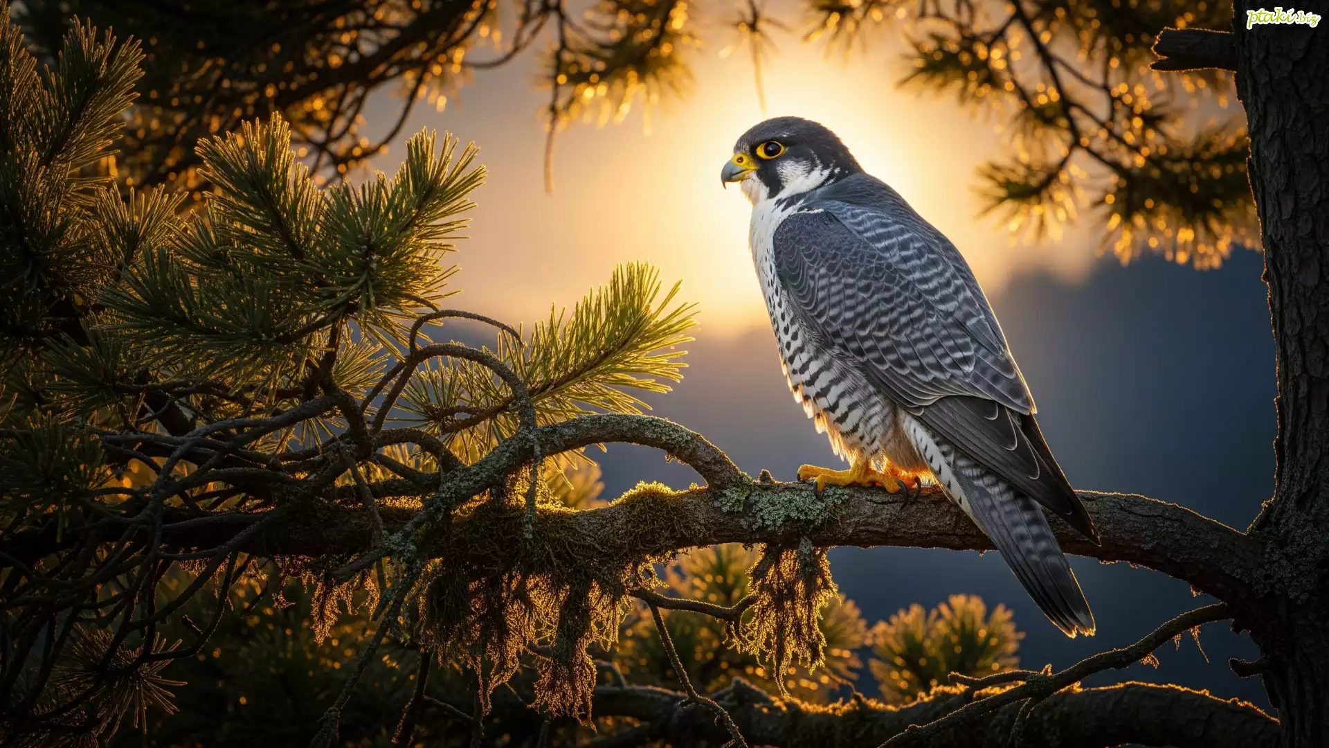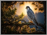 Ptak, Sokół wędrowny, Drzewo, Iglaste, Gałązki
