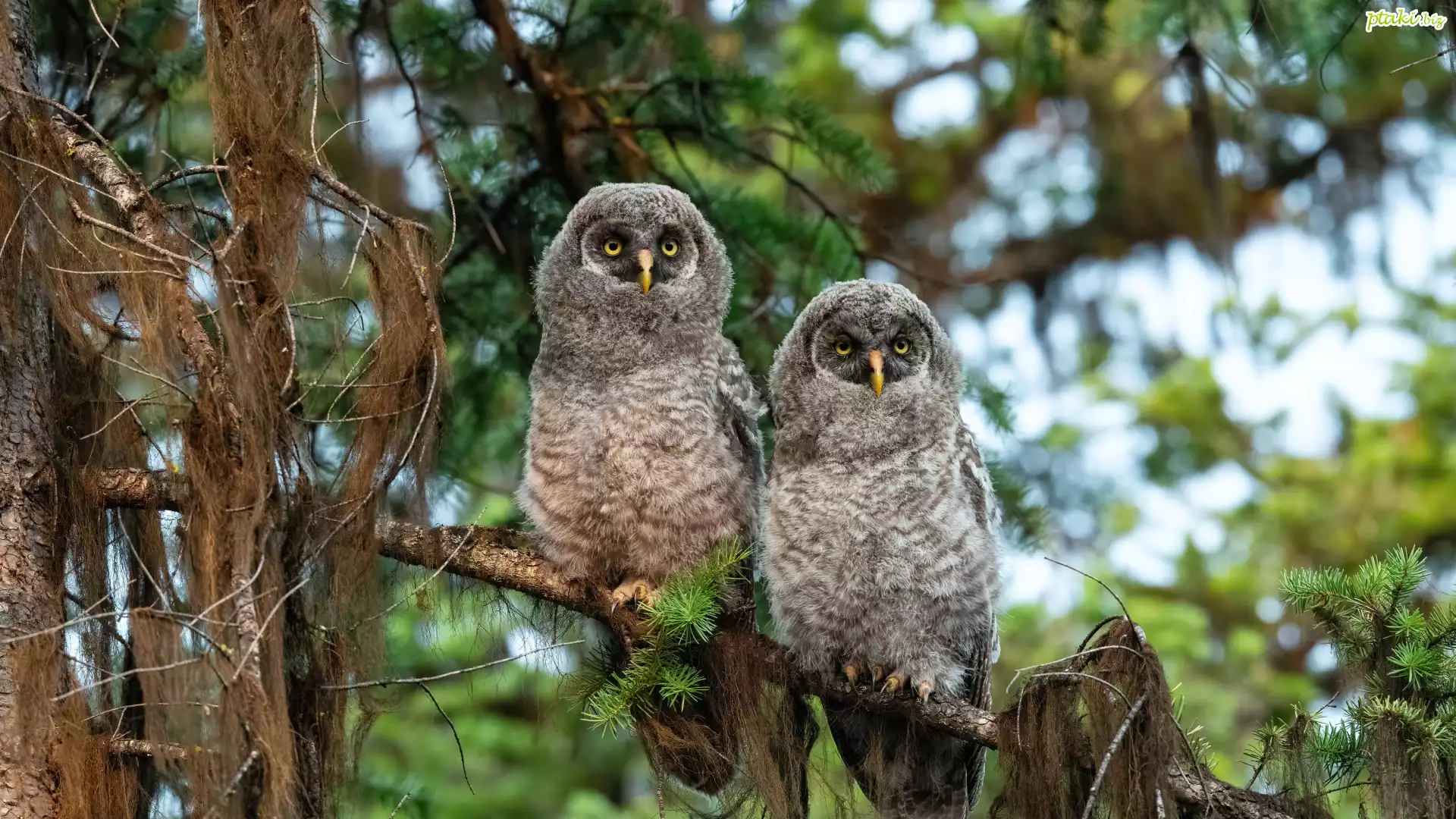 Dwie, Sowy, Puszczyki, Drzewo, Gałęzie, Konar