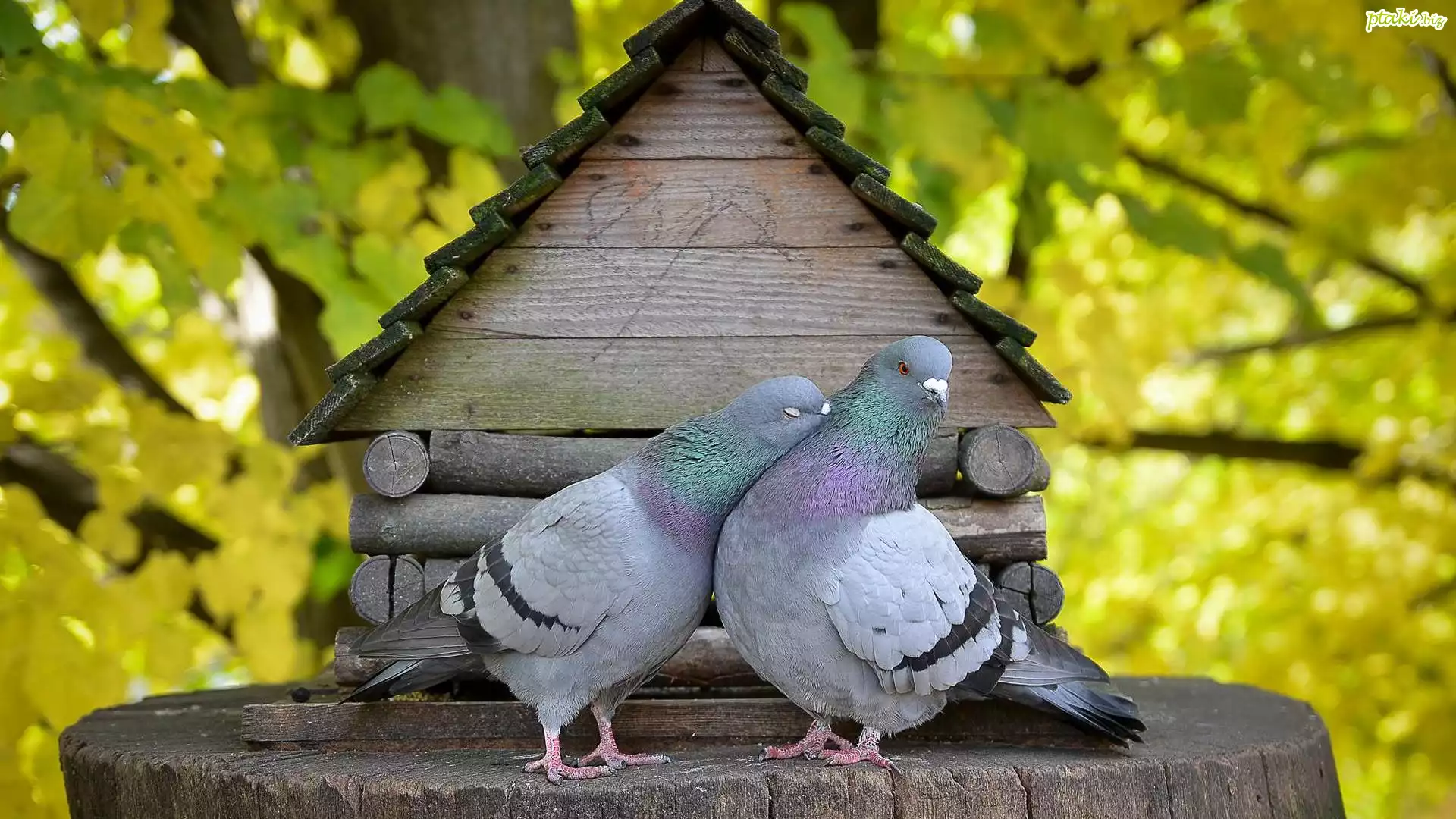 Dwa, Gołębie, Domek, Pień