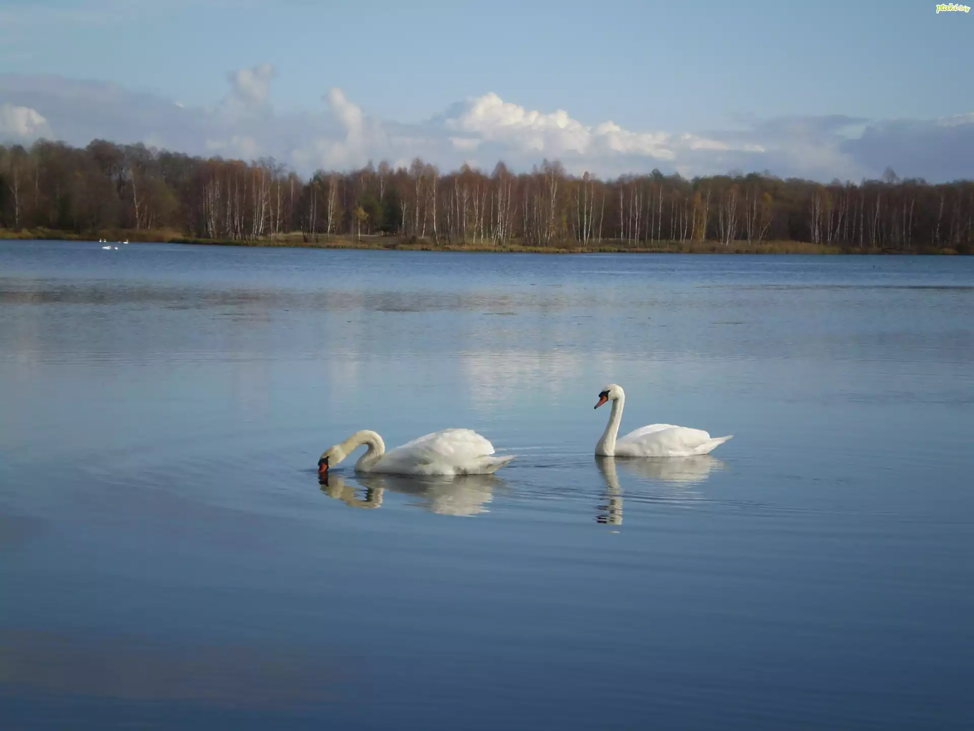 Dwa, Łabędzie nieme, Jezioro, Drzewa