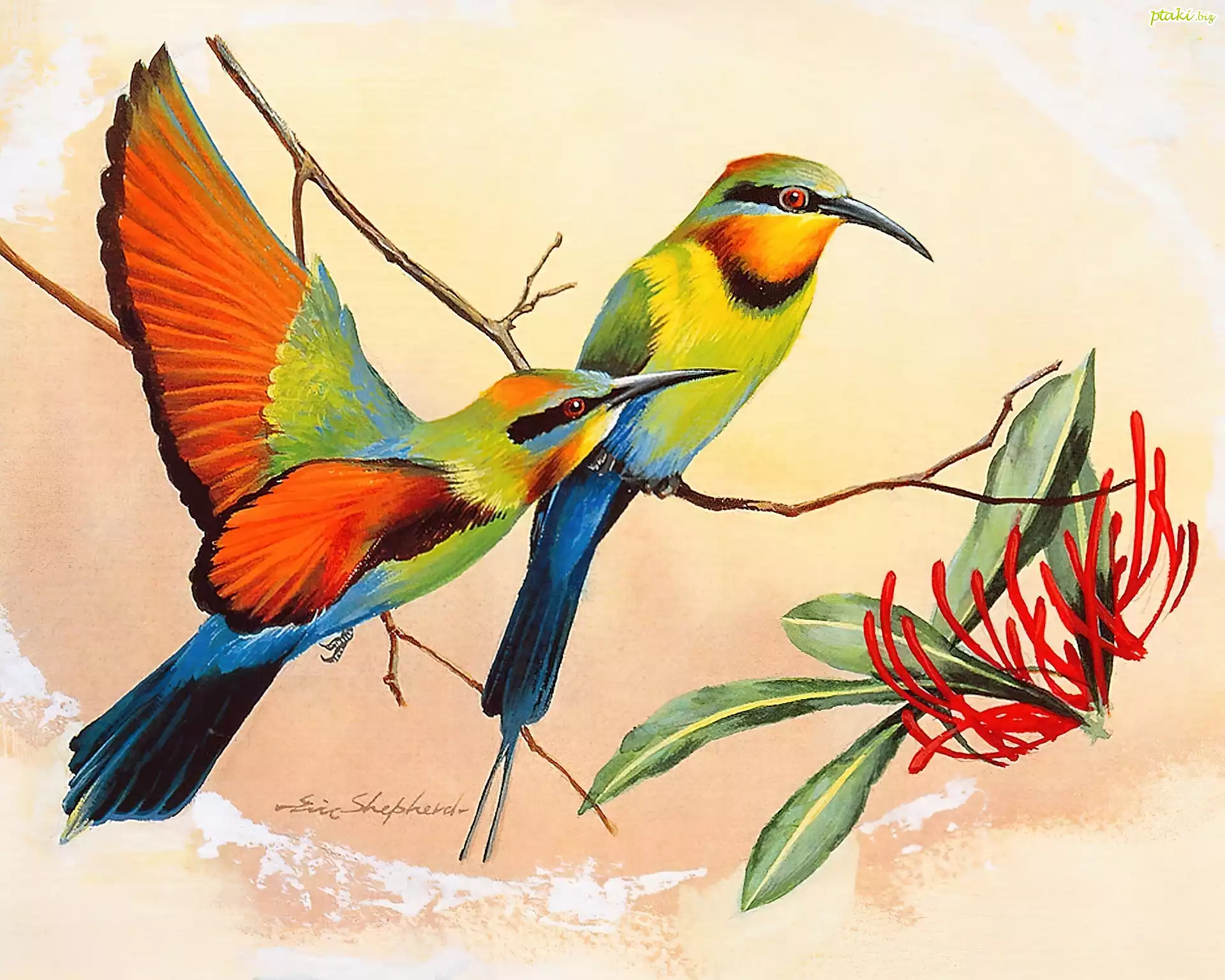 Dwa, Kolorowe, Ptaki, Gałązka