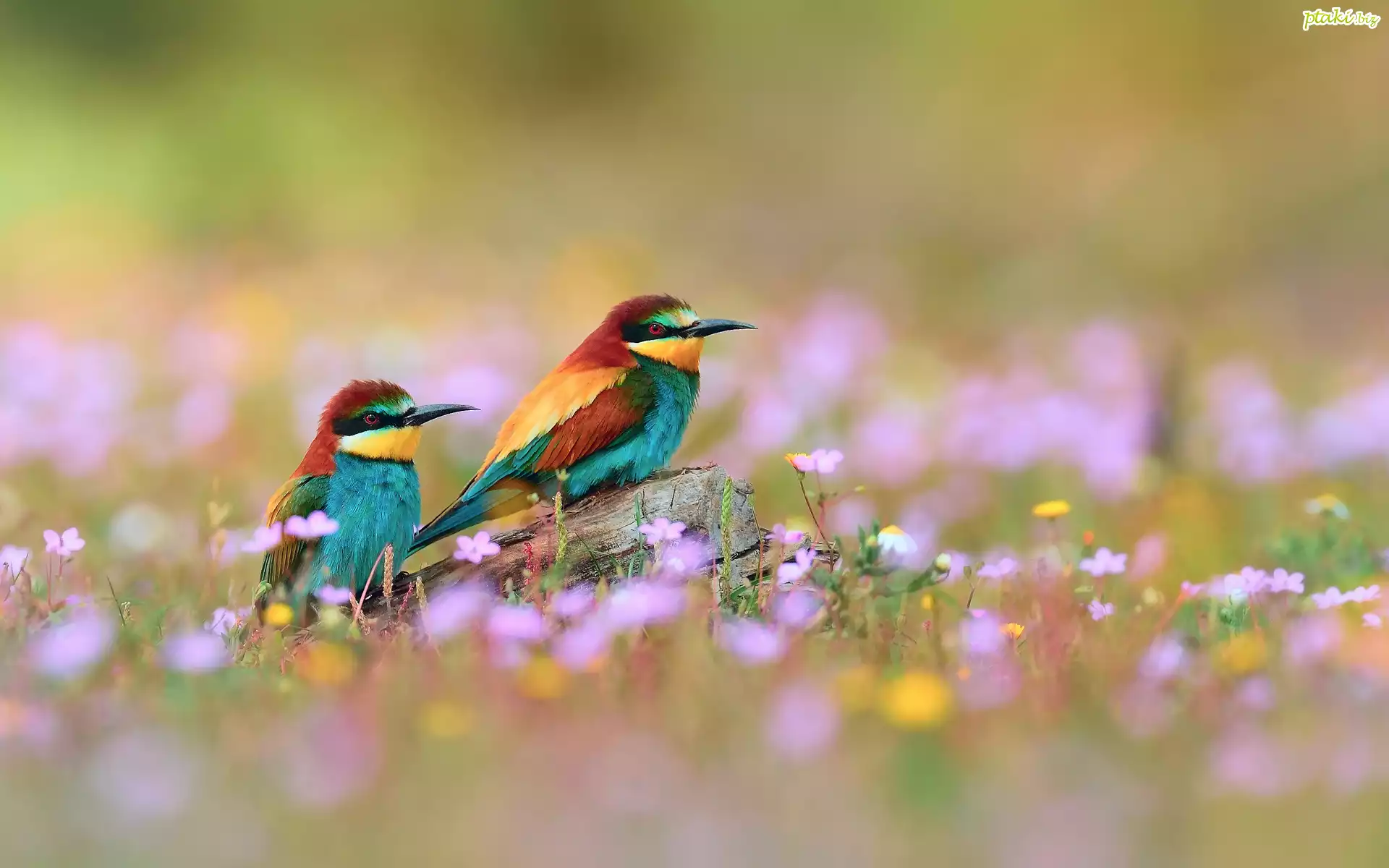 Dwa, Kolorowe, Ptaszki, Łąka