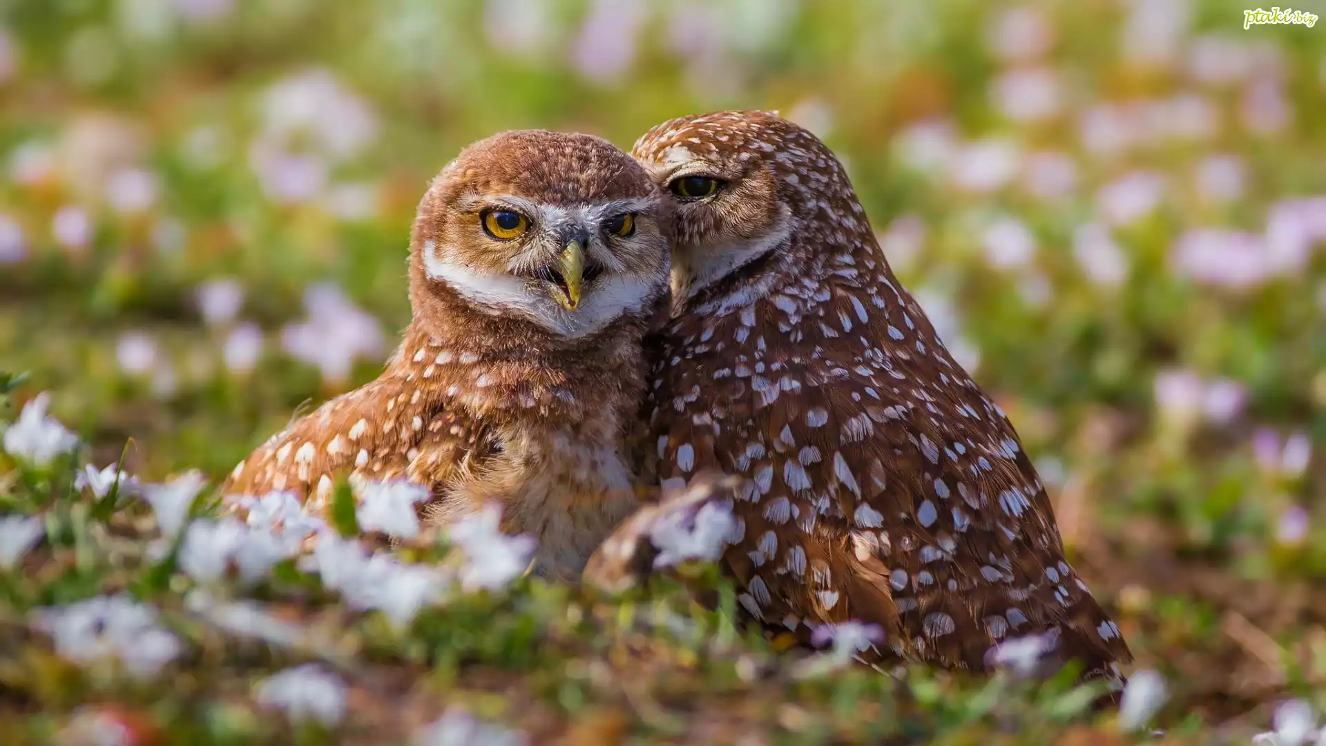 Dwie, Młode, Sówki, Pójdźki, Łąka, Trawa