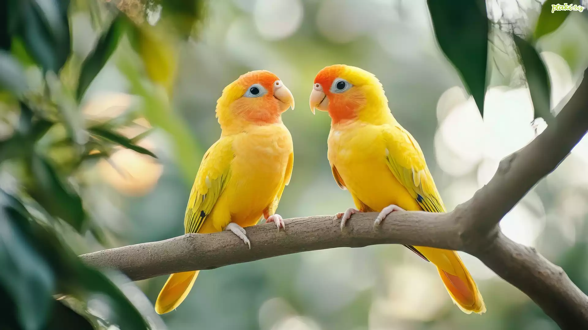 Żółte, Dwie, Papugi, Gałąź, Grafika