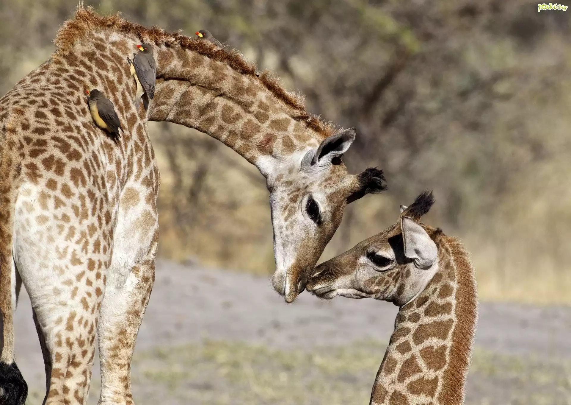 Dwie, Żyrafy, Towarzystwo, Ptaków