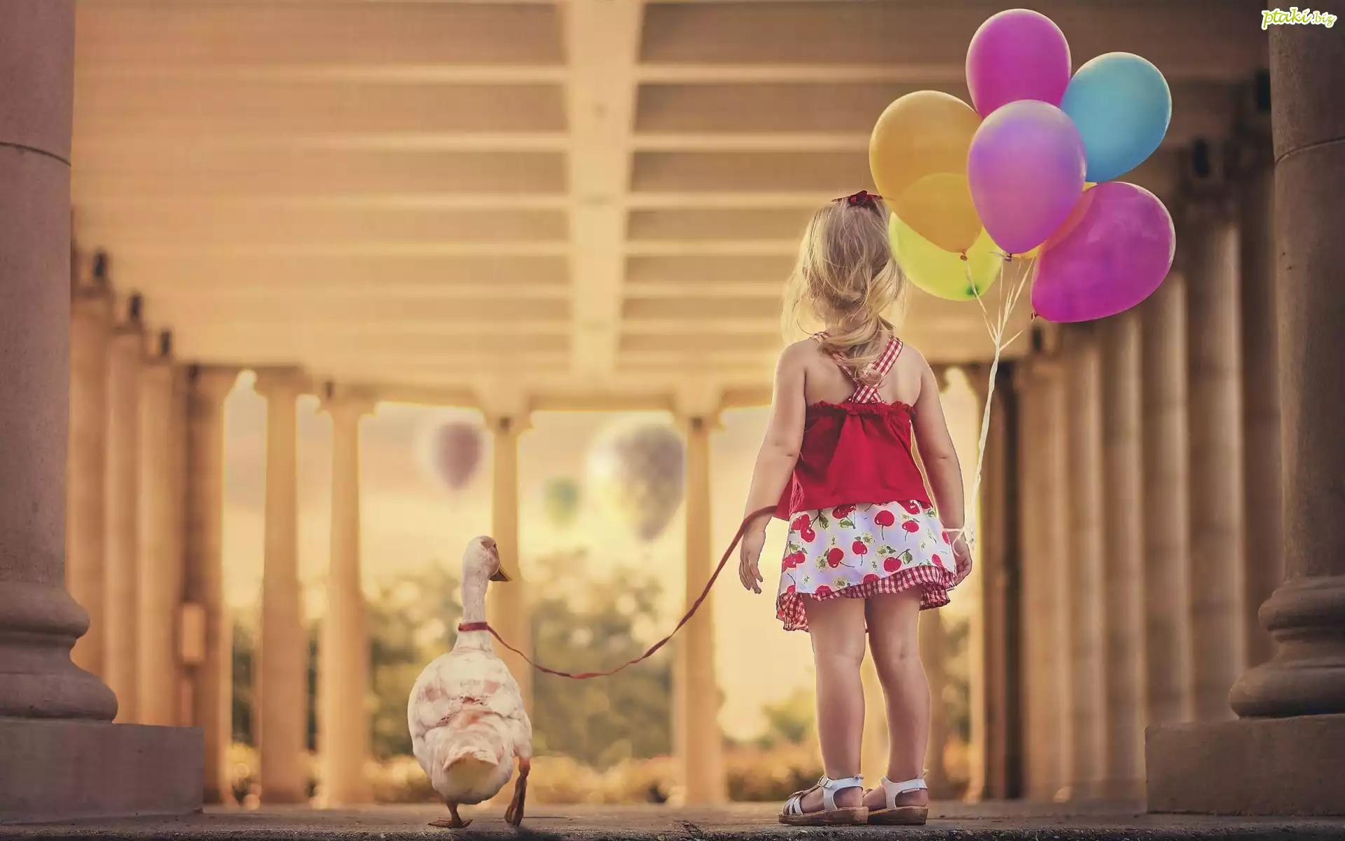 Dziewczynka, Kolorowe, Baloniki, Gąska, Park