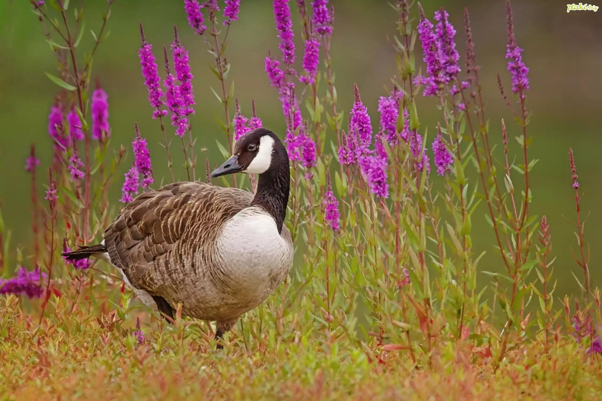 Dzika, Gęś, Łąka, Fioletowe, Kwiaty