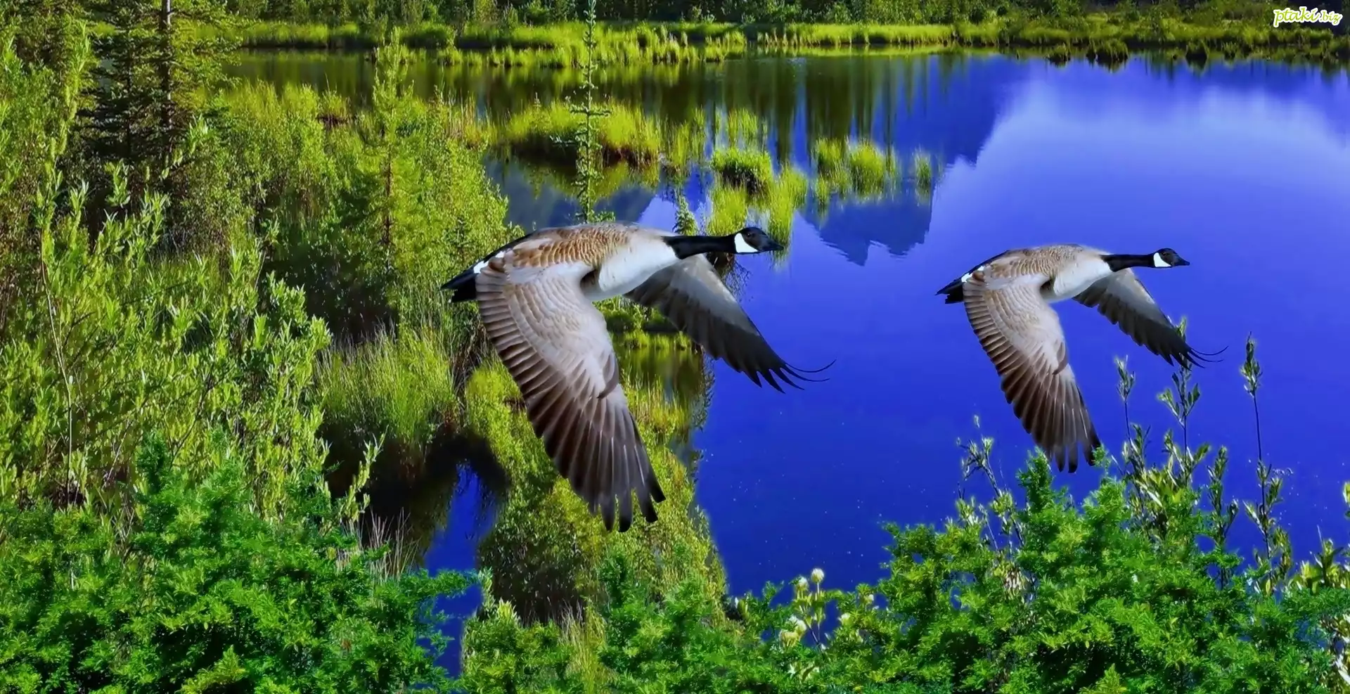 Dzikie, Gęsi, Jezioro, Drzewa