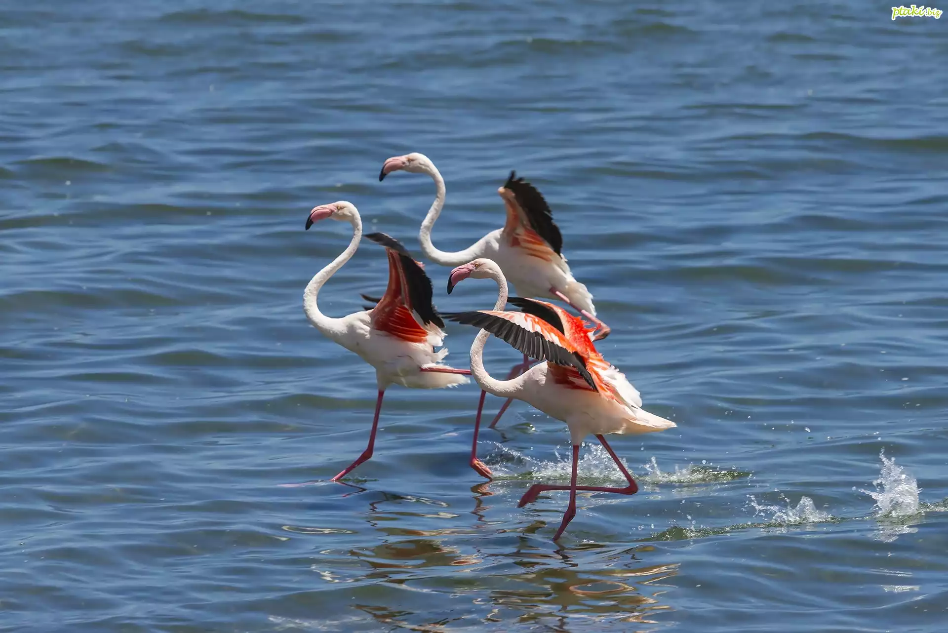 Trzy, Flamingi, Morze