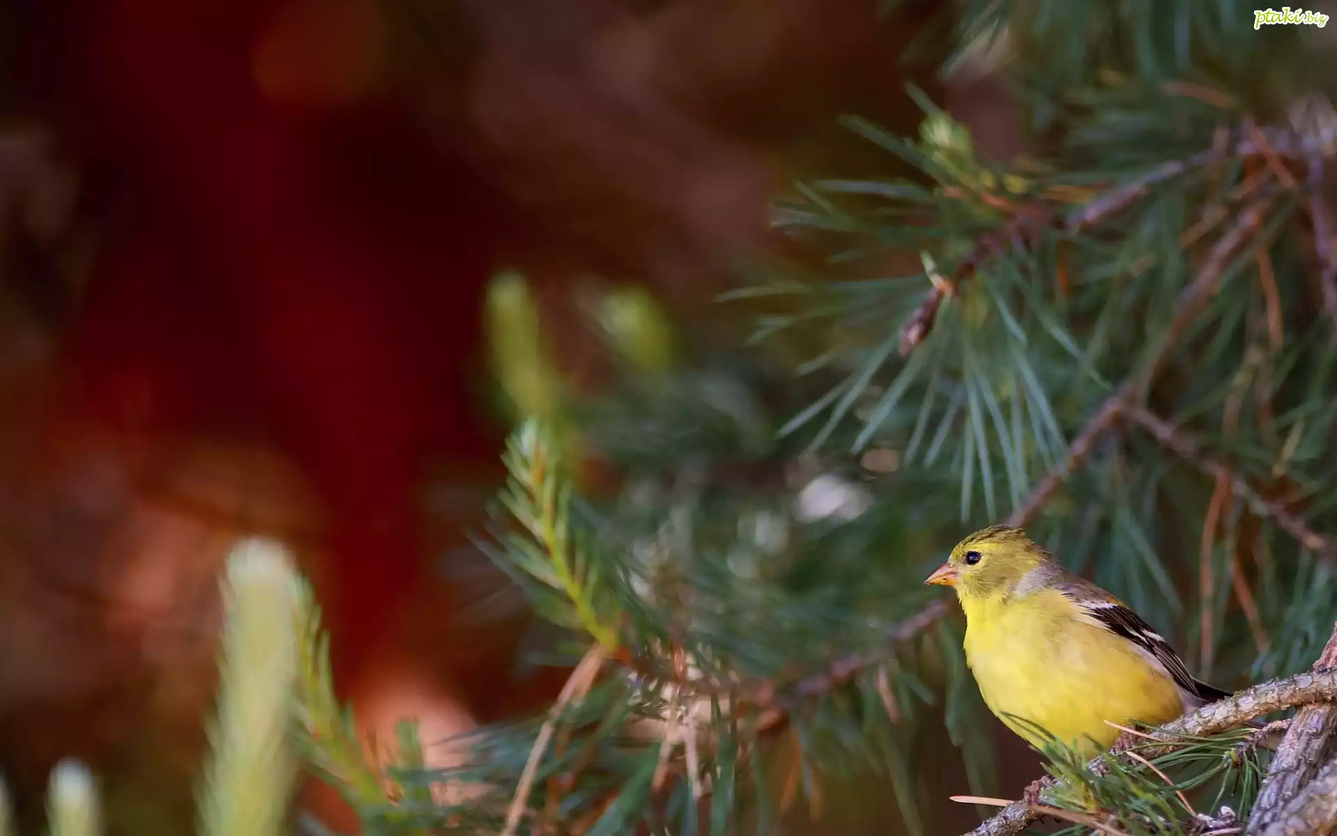 Żółty, Ptaszek, Czyż zwyczajny, Gałązki