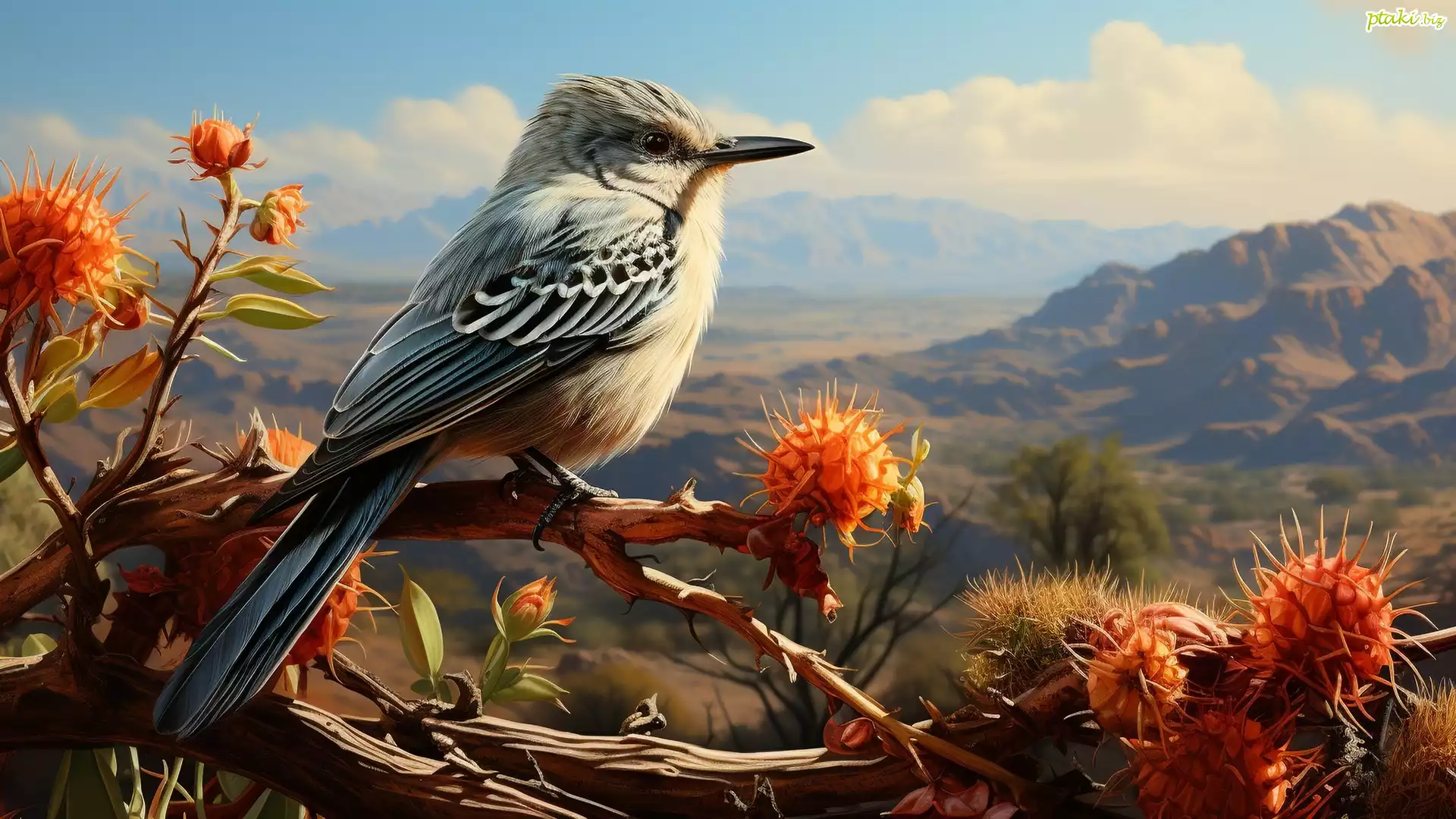 Ptak, Gałąź, Rośliny, Góry, Grafika