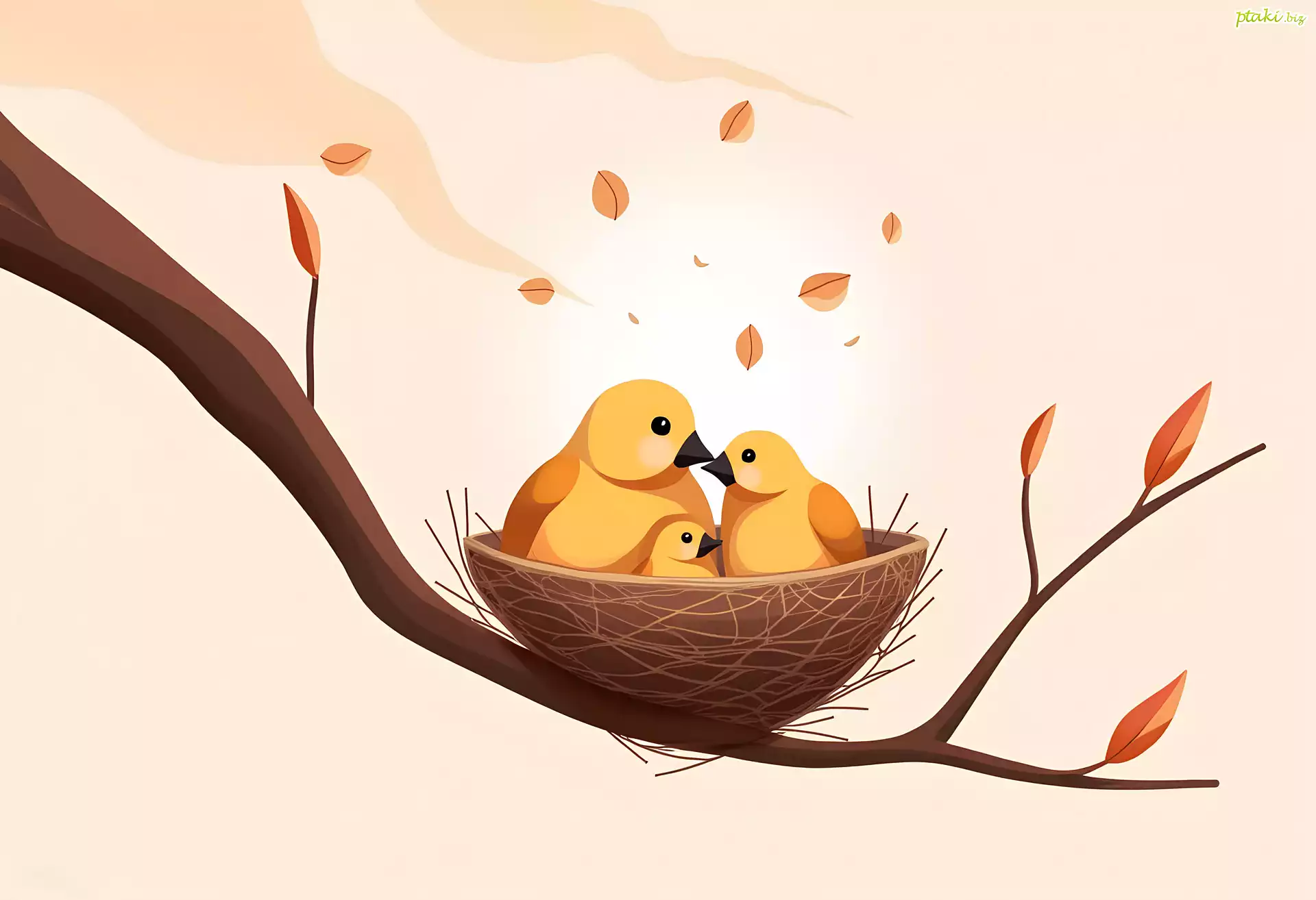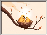 Trzy, Ptaki, Gniazdko, Gałąź