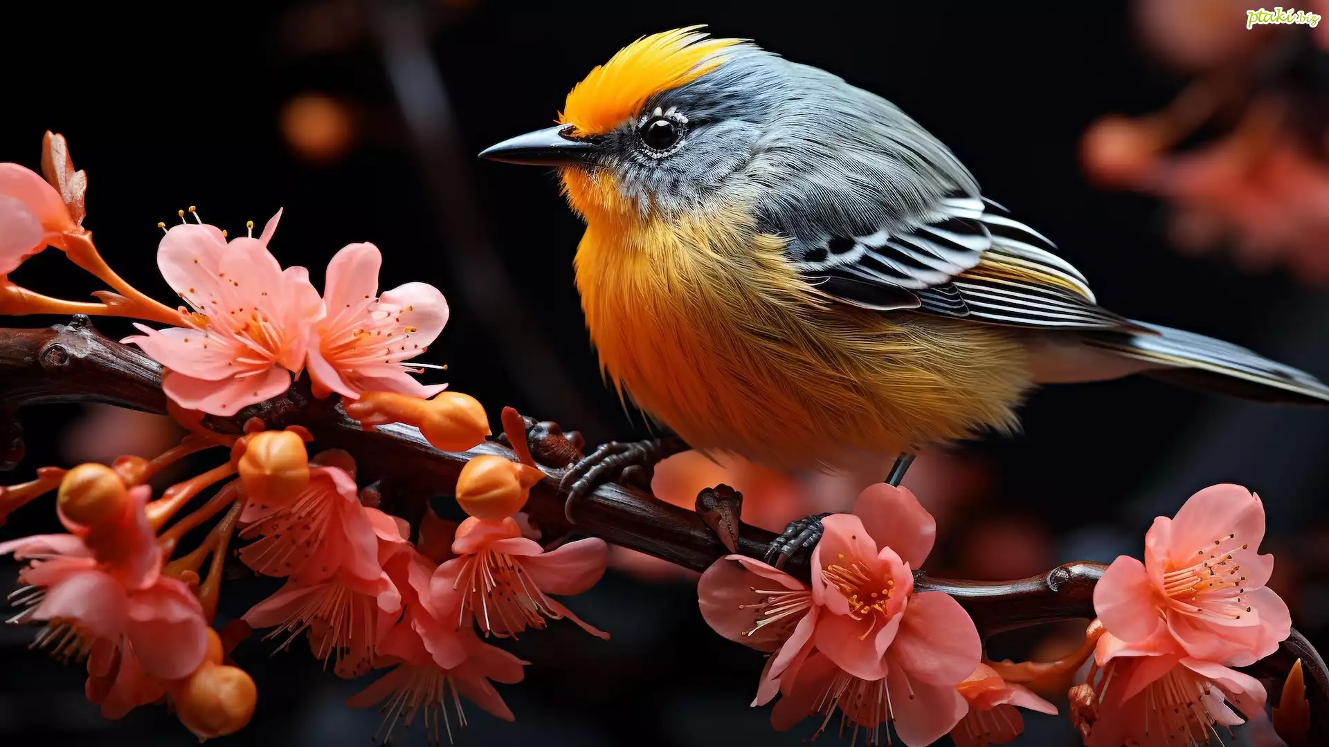 Ptak, Gałązka, Drzewo owocowe, Kwiaty