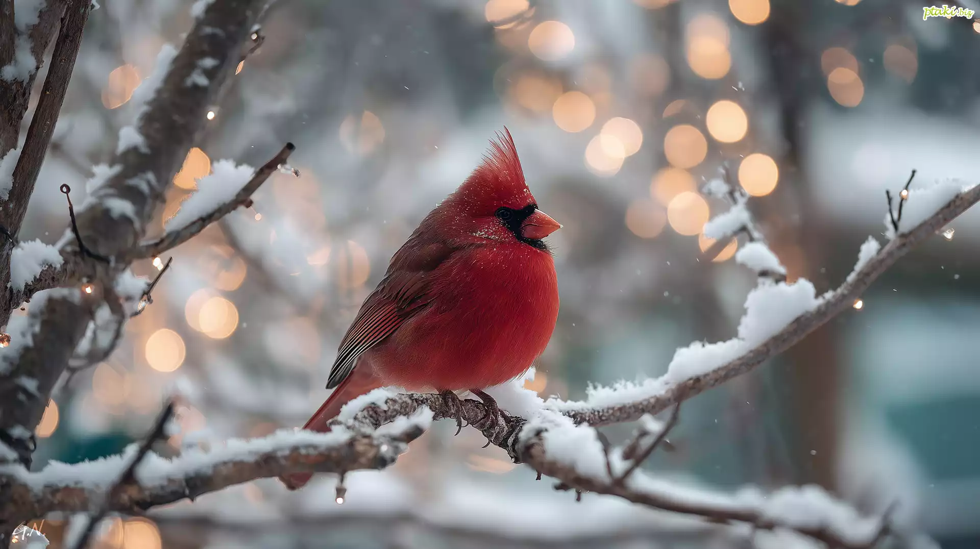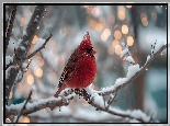 Czerwony, Ptak, Kardynał, Gałązka, Zima, Grafika AI