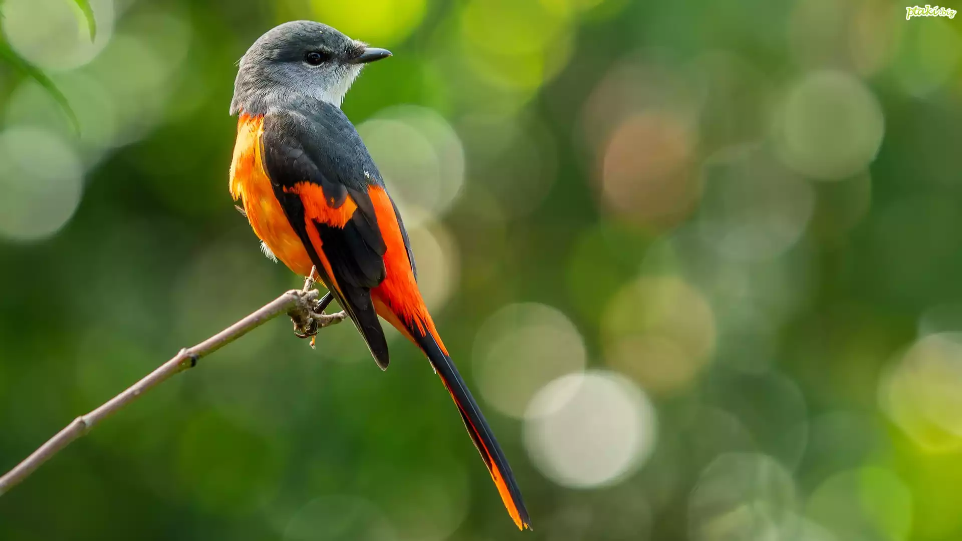 Ptak, Purpurek pomarańczowy, Gałązka, Rozmyte, Tło