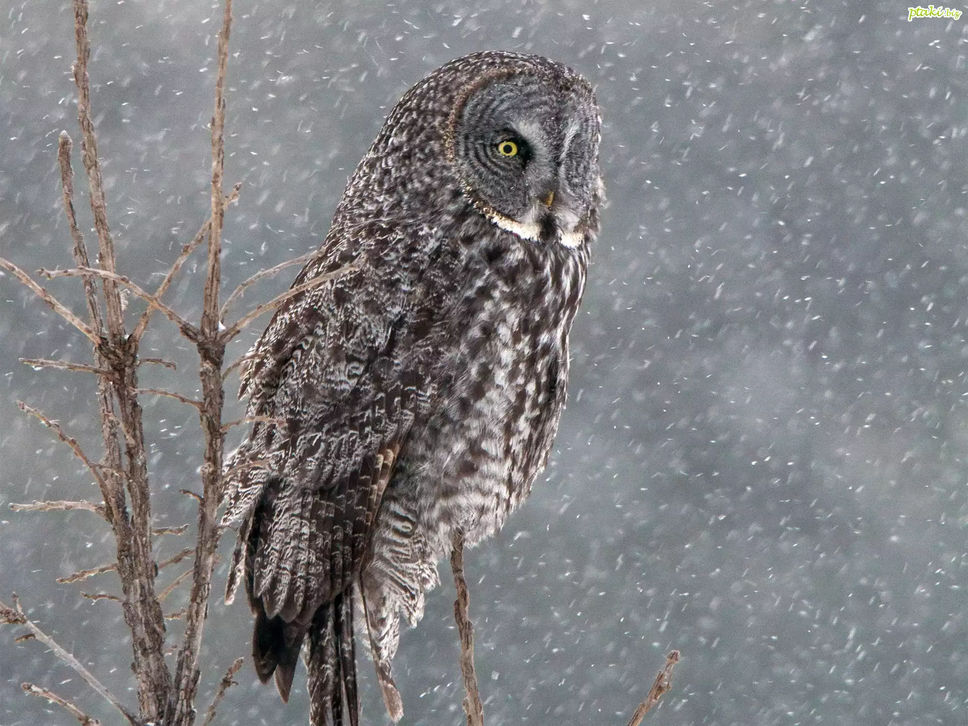 Sowa, Puszczyk mszarny, Gałązki, Śnieg