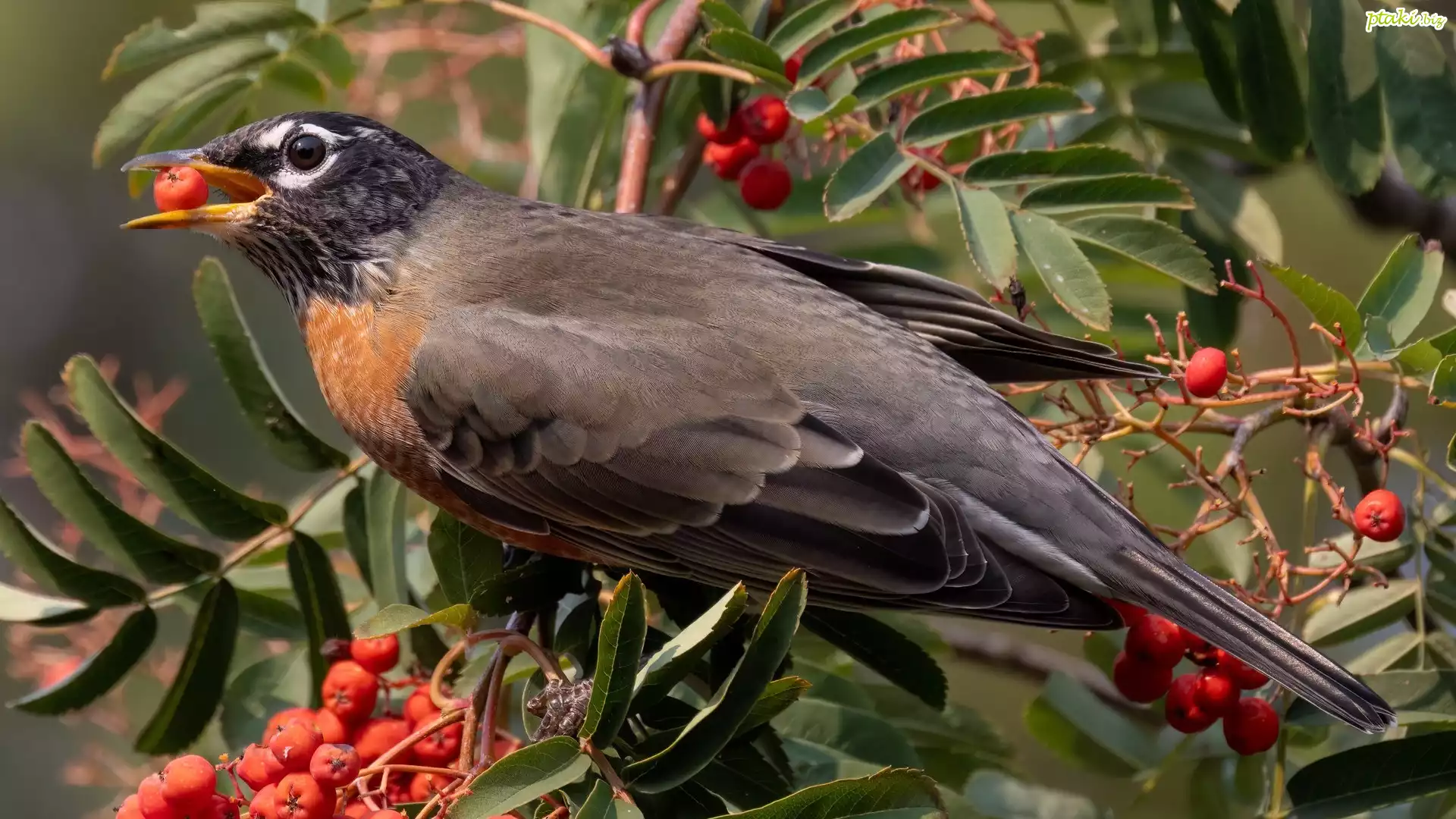 Ptak, Drozd wędrowny, Gałązki, Jarzębina, Czerwone, Owoce