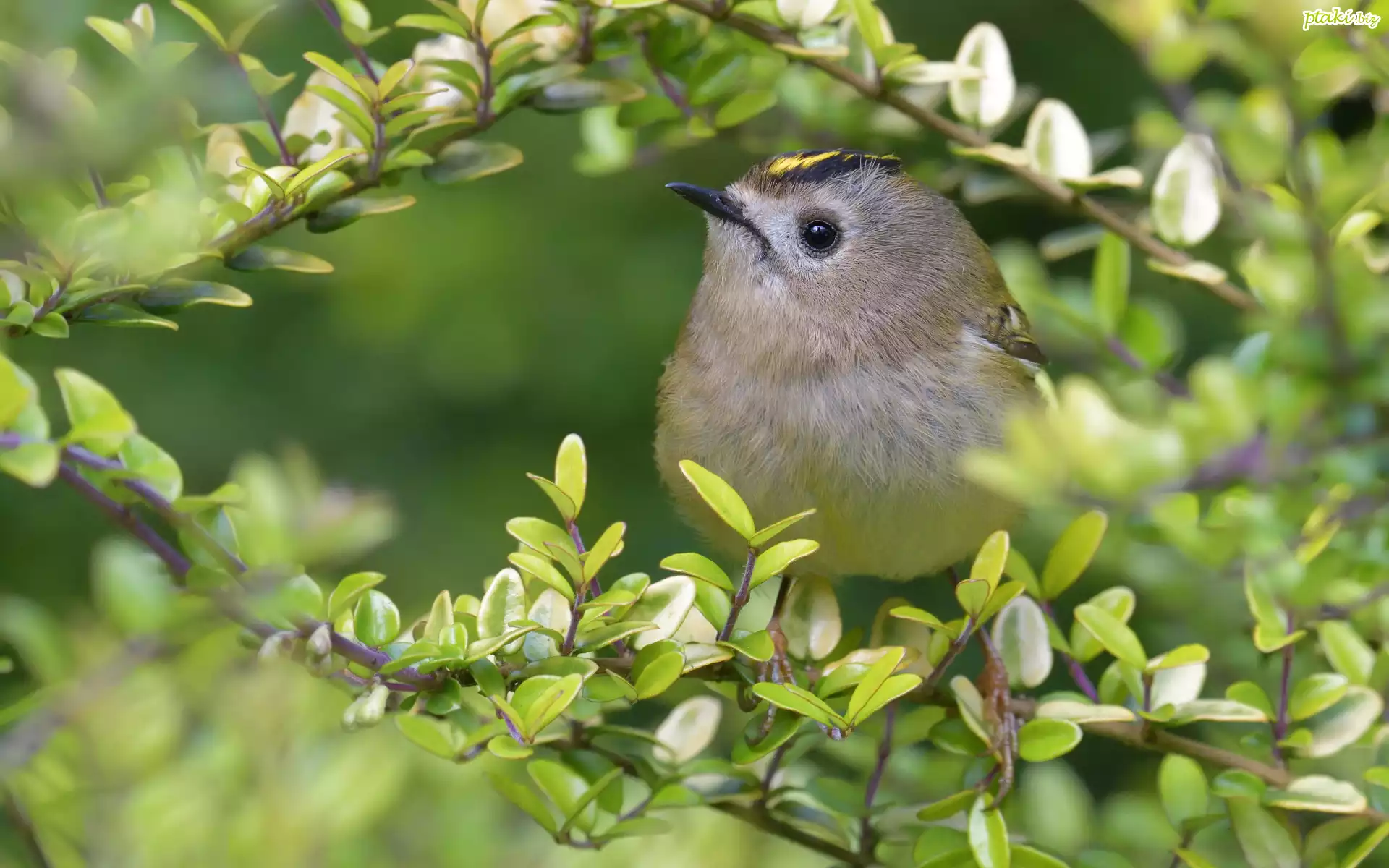 Liście, Gałęzie, Ptak, Mysikrólik zwyczajny