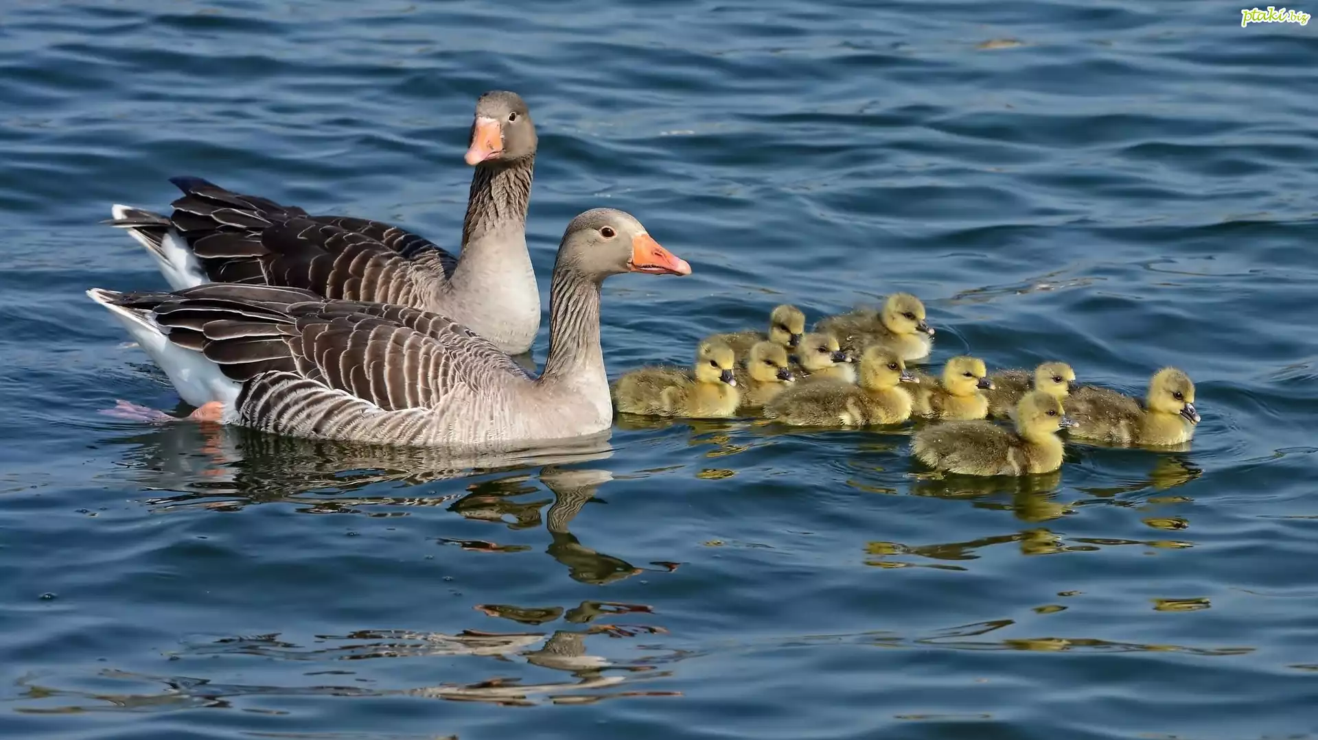 Gęsia, Rodzina, Para, Z, Młodymi, Rzeka
