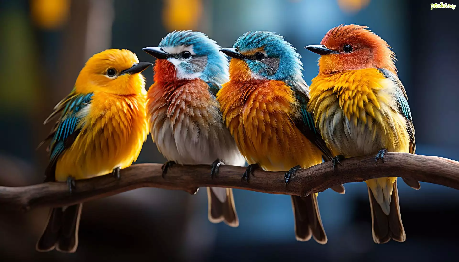 Kolorowe, Ptaki, Gałąź, Grafika