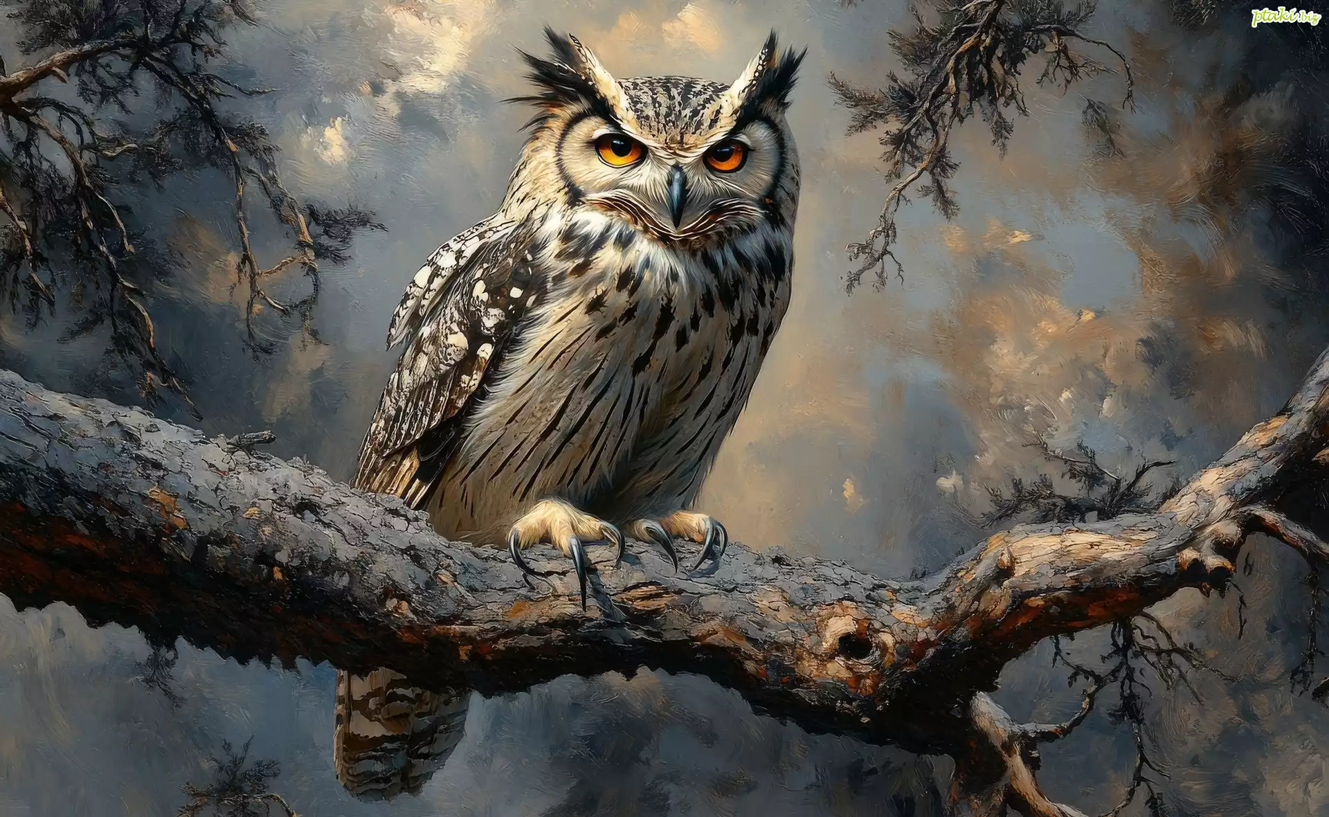 Sowa, Puchacz, Gałąź, Grafika