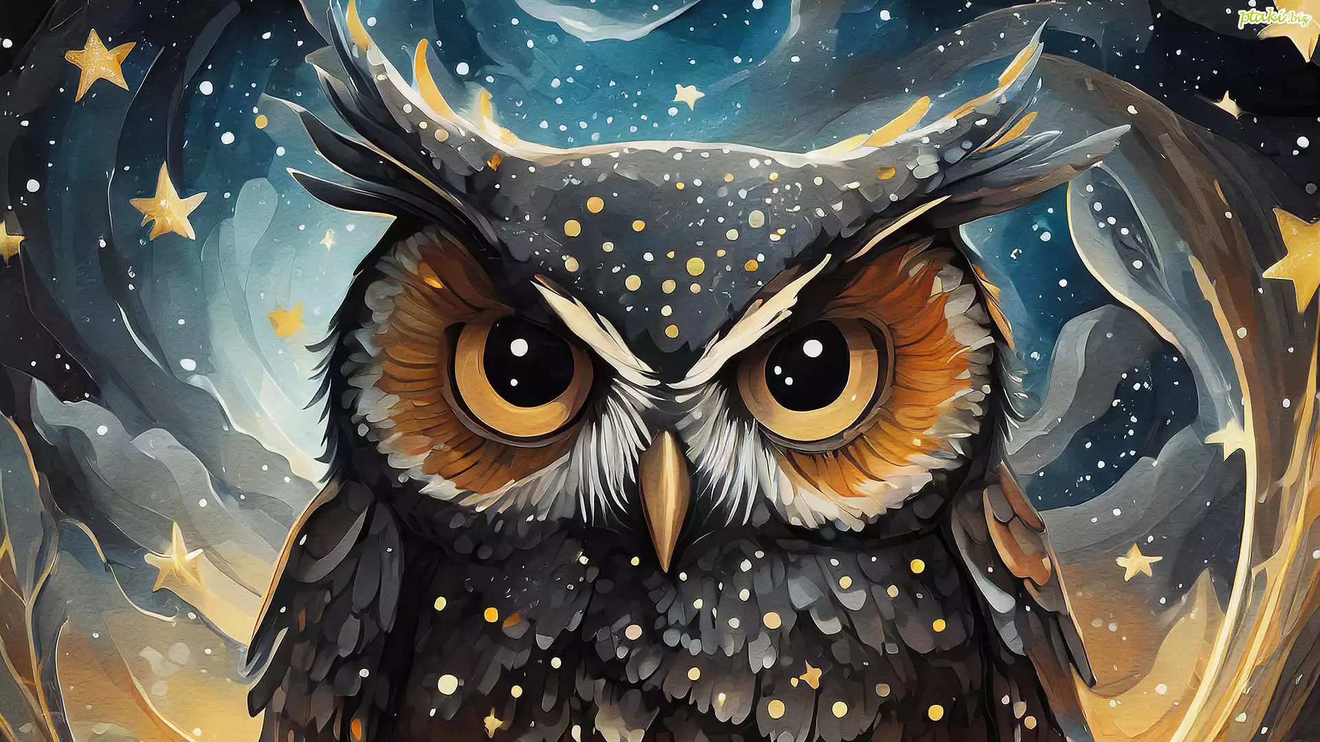 Grafika, Ptak, Sowa, Gwiazdy