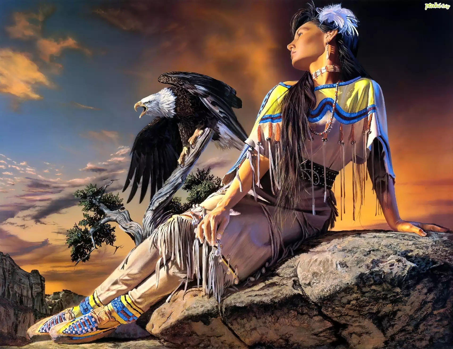 Indianka, Fantasy, Kobieta, Bielik amerykański