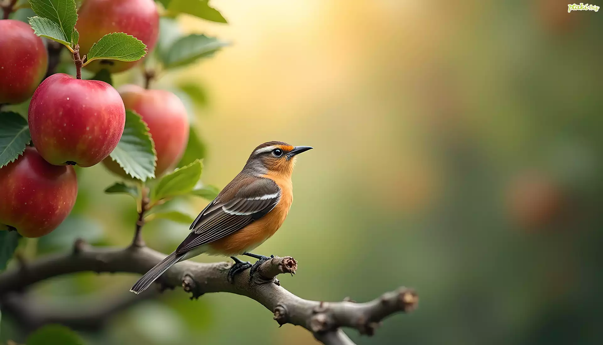 Rudo-brązowy, Ptak, Jabłka, Gałązka, Grafika AI
