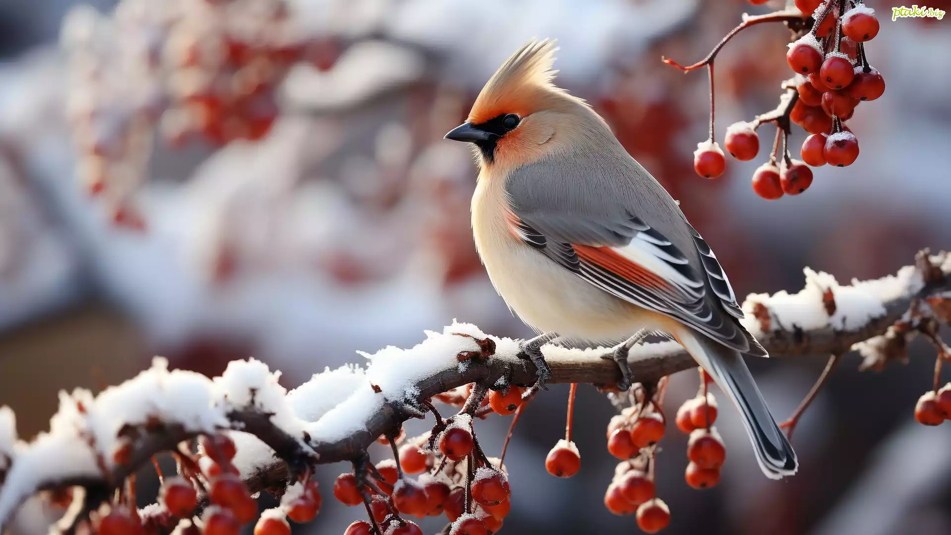 Ptak, Jemiołuszka, Gałązka, Jarzębina, Czerwone, Owoce, Śnieg