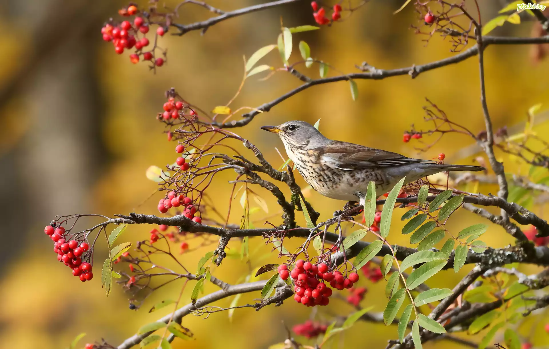 Ptak, Kwiczoł, Gałązki, Jarzębina