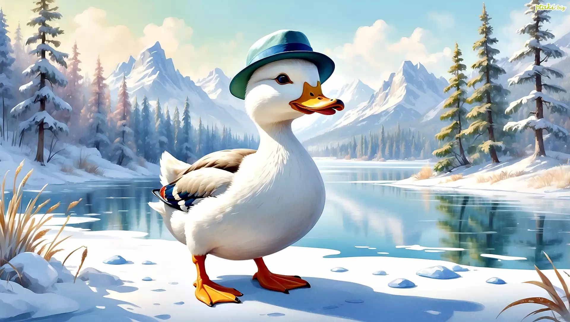 Biała, Kaczka, Kapelusz, Jezioro, Góry, Zima, Grafika
