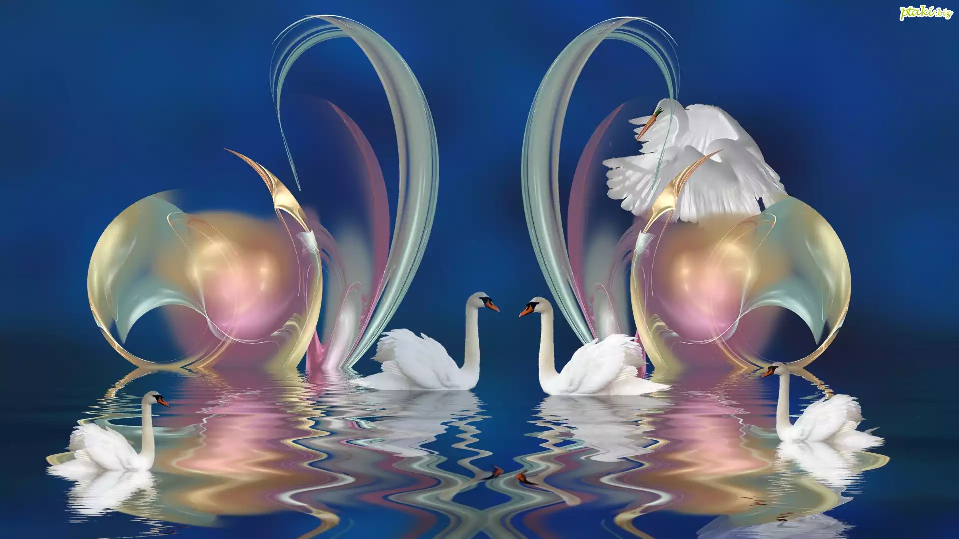 Jezioro, Łabędzie, Kolorowa, Grafika