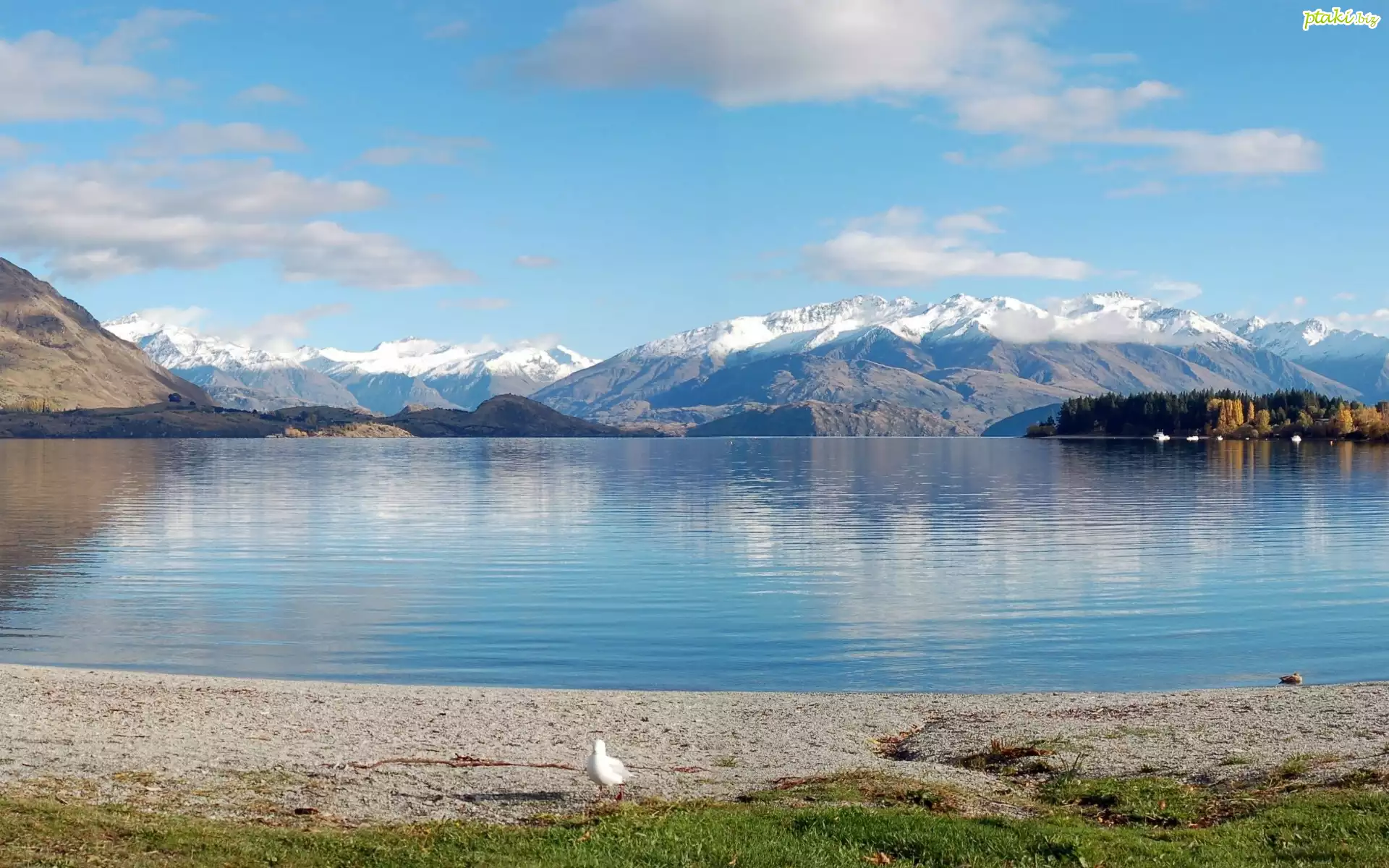 Jezioro, Góry, Lasy, Ptak