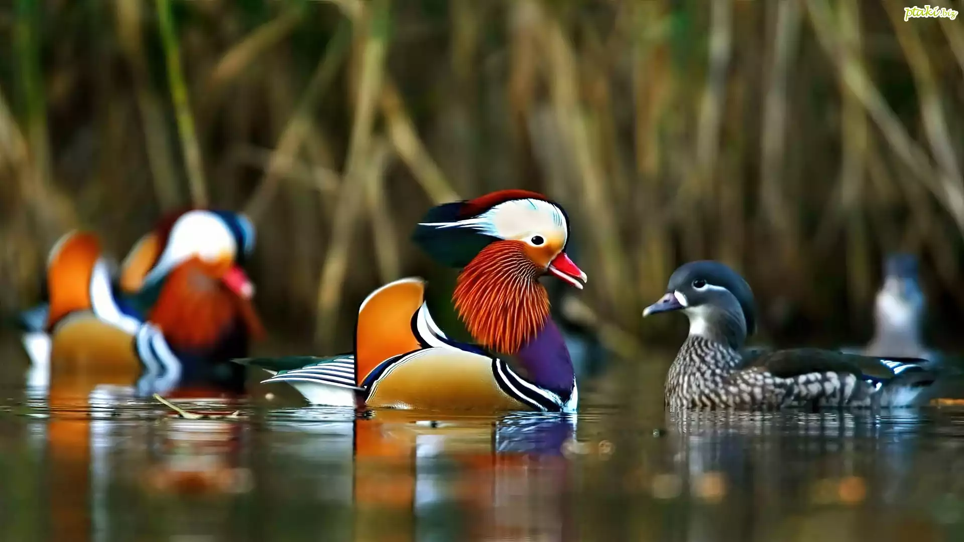 Jezioro, Kaczki, Mandarynki, Rozmycie