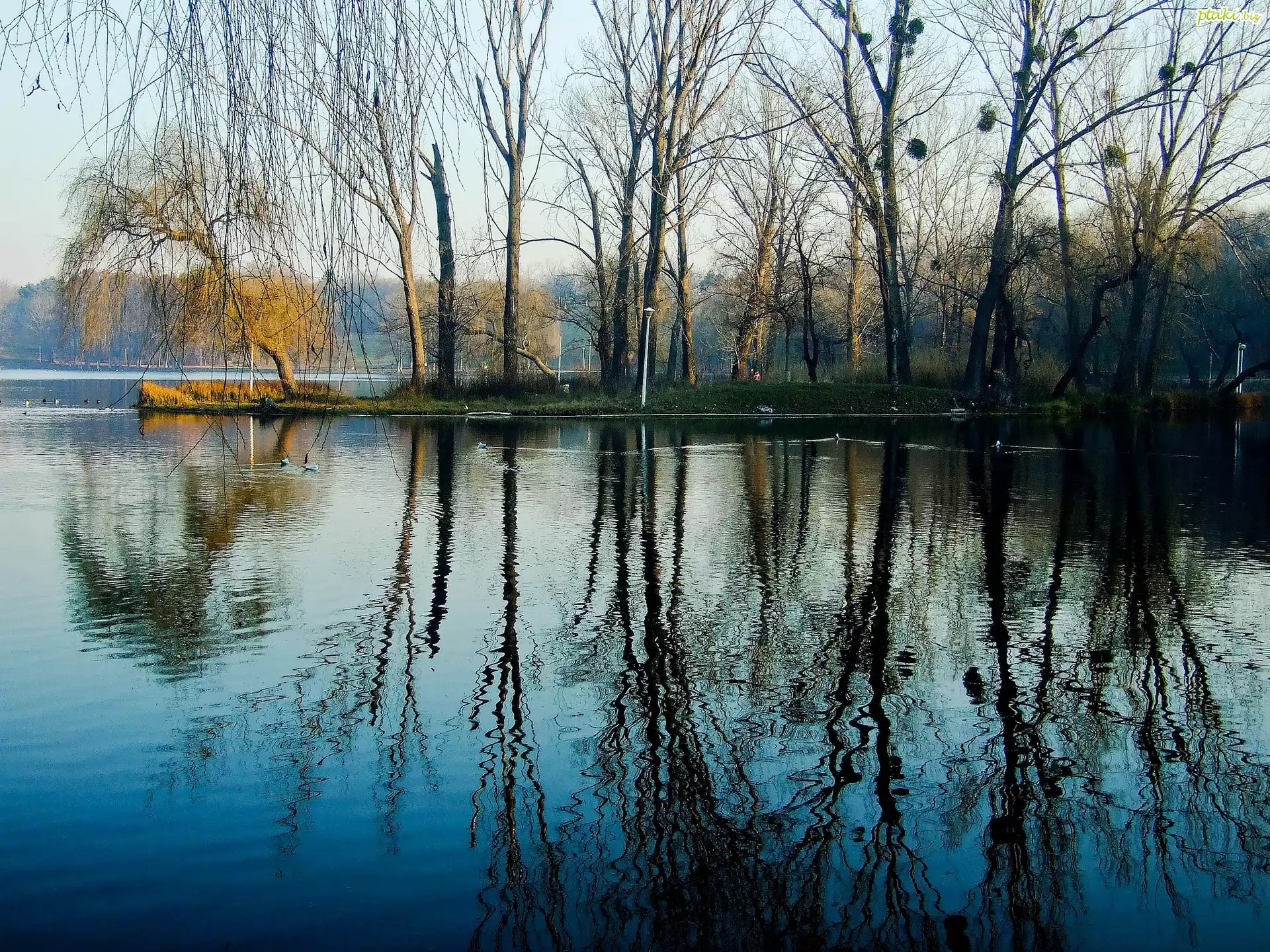 Jezioro, Lasy, Kaczki, Odbicie, Wodne