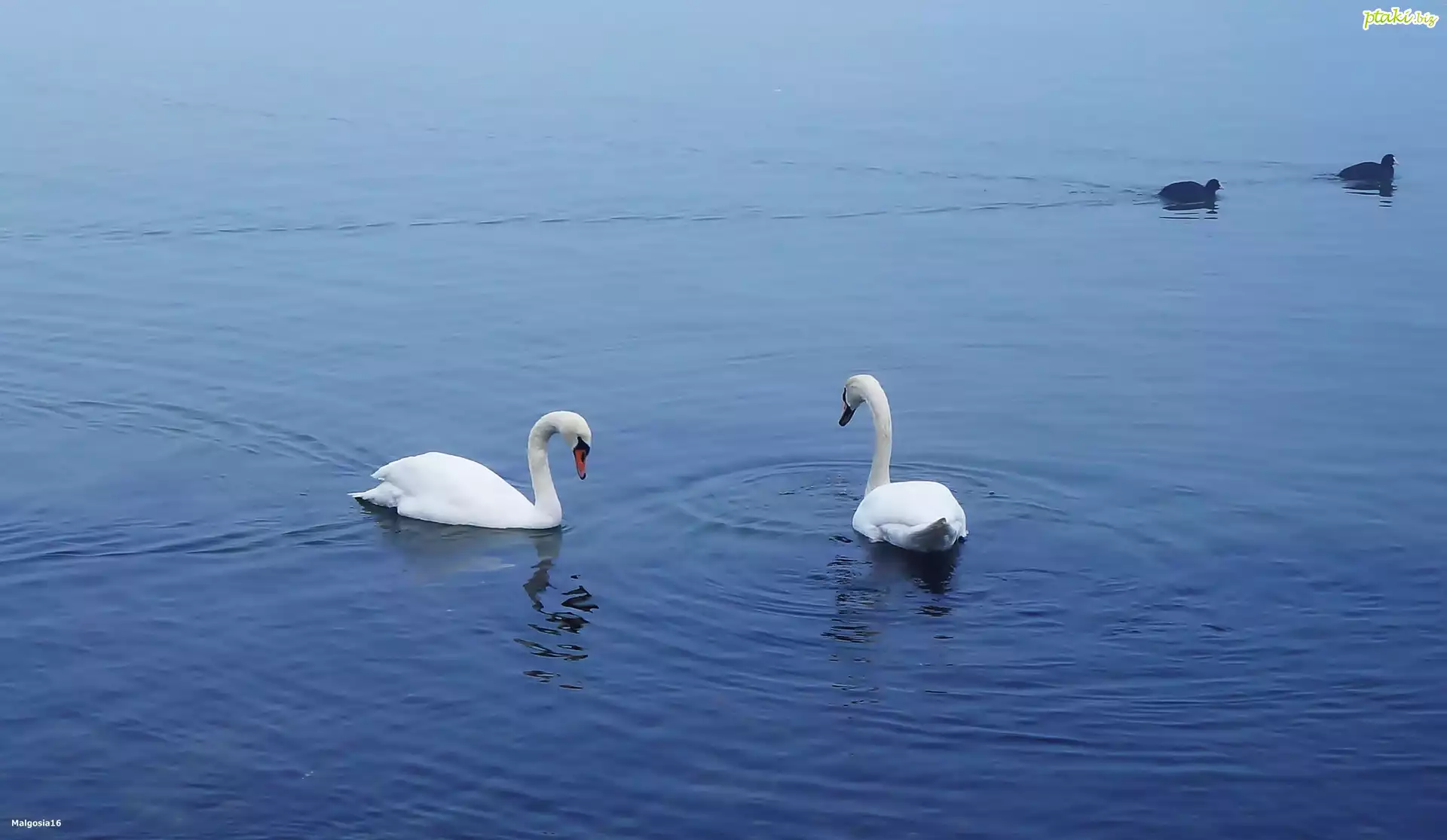 Jezioro, Białe, Ptaki, Łabędzie