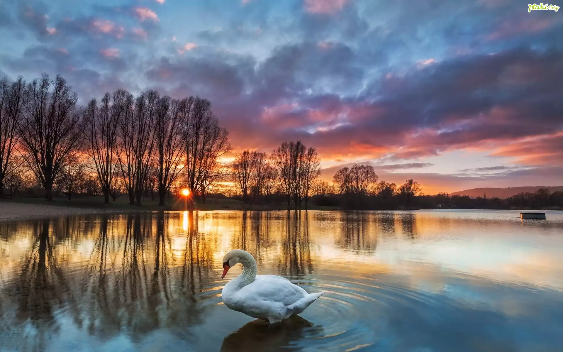 Jezioro, Łabędź, Zachód słońca