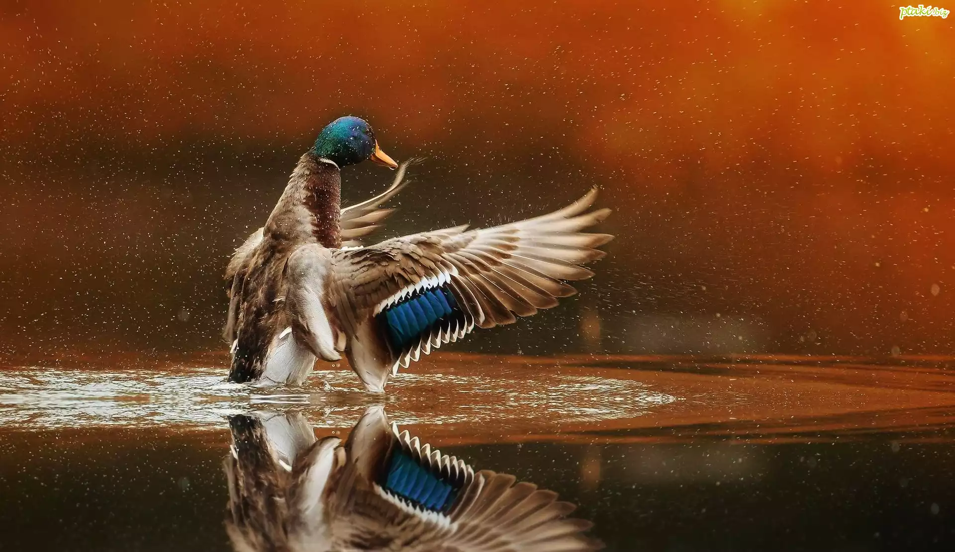 Kaczka, Skrzydła, Woda, Krople